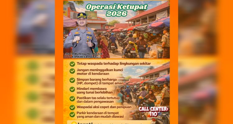 Polres Bangka Imbau Masyarakat Tingkatkan Kewaspadaan Saat Berbelanja di Keramaian Polri|20 Maret 2026oleh Jejakkriminal2022 Bangka | Jejakkriminal.com— Dalam rangka pelaksanaan Operasi Ketupat 2026, Polres Bangka mengeluarkan