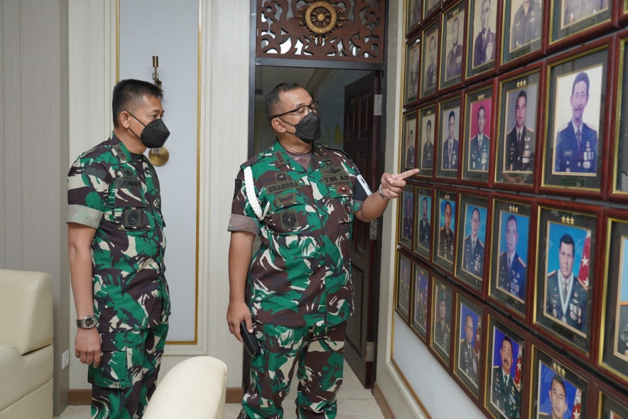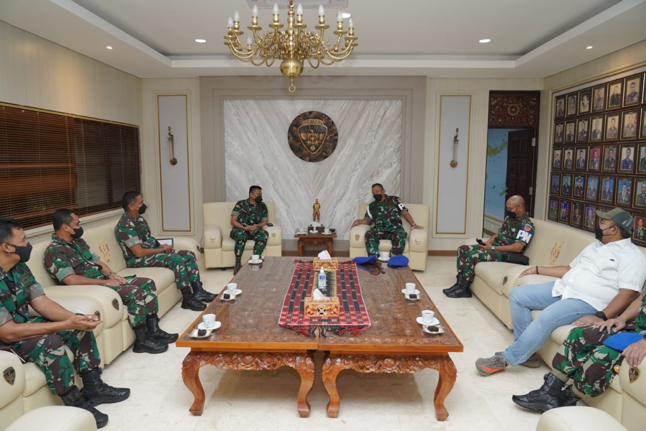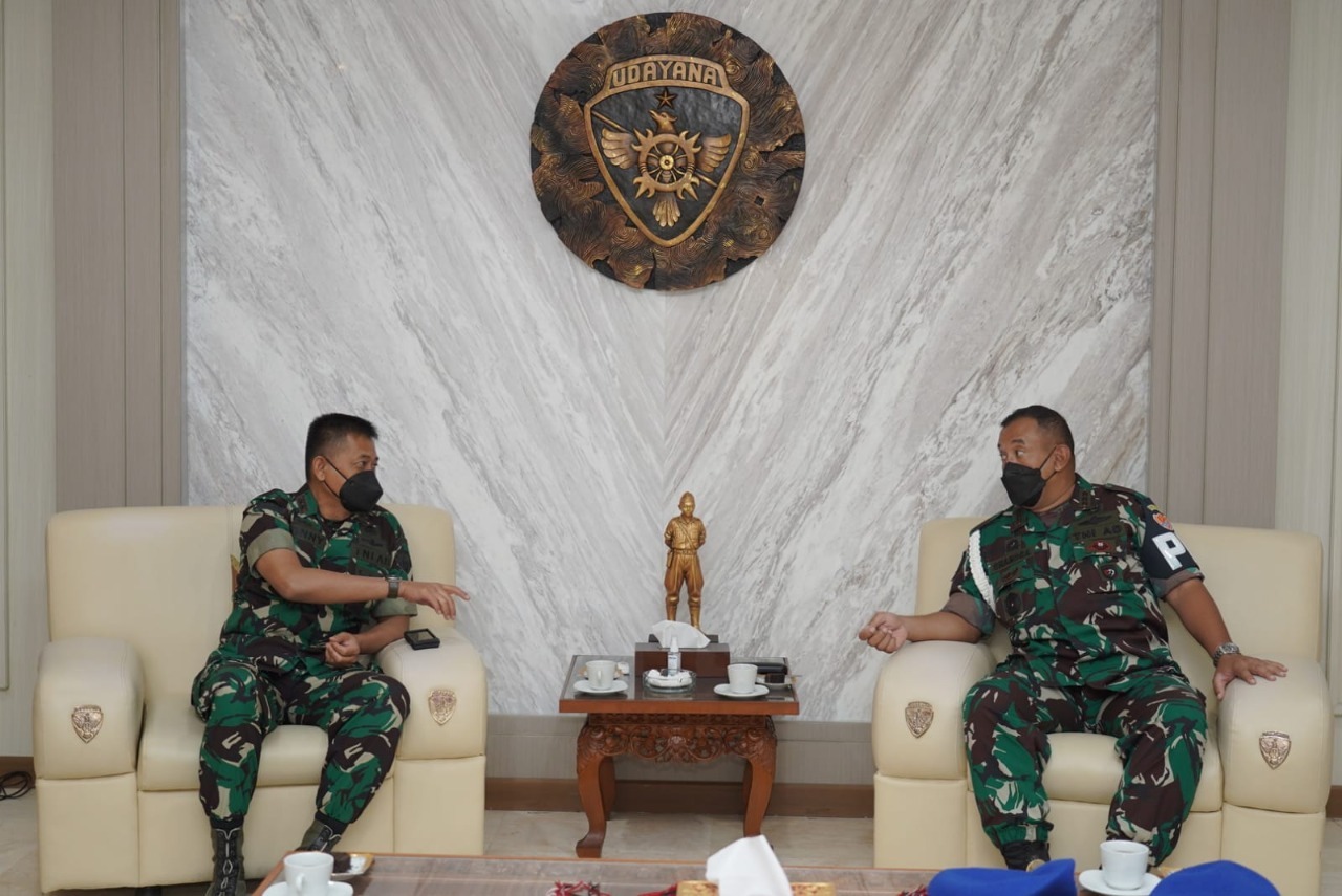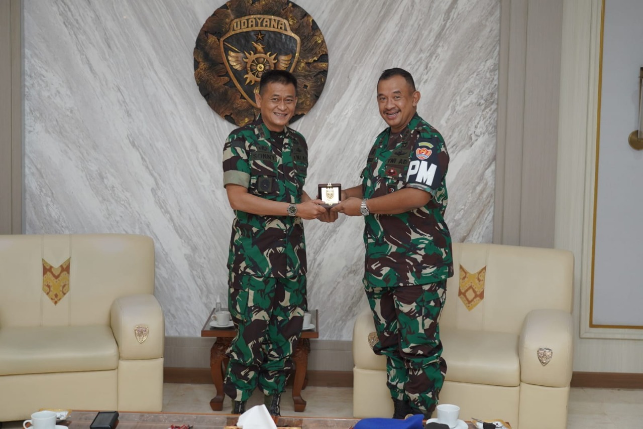Denpasar| Jejakkriminal.com – Pangdam IX/Udayana Mayjen TNI Sonny Aprianto, S.E., M.M., menerima audiensi dari rombongan Pusat Polisi Militer TNI Angkatan Darat (Puspomad) yang dipimpin langsung oleh Danpuspomad Letjen TNI Chandra W. Sukotjo, M.Sc., bertempat di Ruang Tamu Pangdam IX/Udayana, Makodam, Denpasar, pada Selasa (8/3/2022).Pada acara tersebut, Danpuspomad didampingi Dircab Puspomad Brigjen TNI Eko Yatma Pranowo menyampaikan maksud kedatangannya adalah dalam rangka bersilaturahmi dengan Pangdam IX/Udayana beserta Staf, dan juga melaksanakan kunjungan kerja dalam rangka menindaklanjuti arahan pimpinan terkait kesiapan Puspomad bersama jajaran dalam pengamanan kegiatan G20.