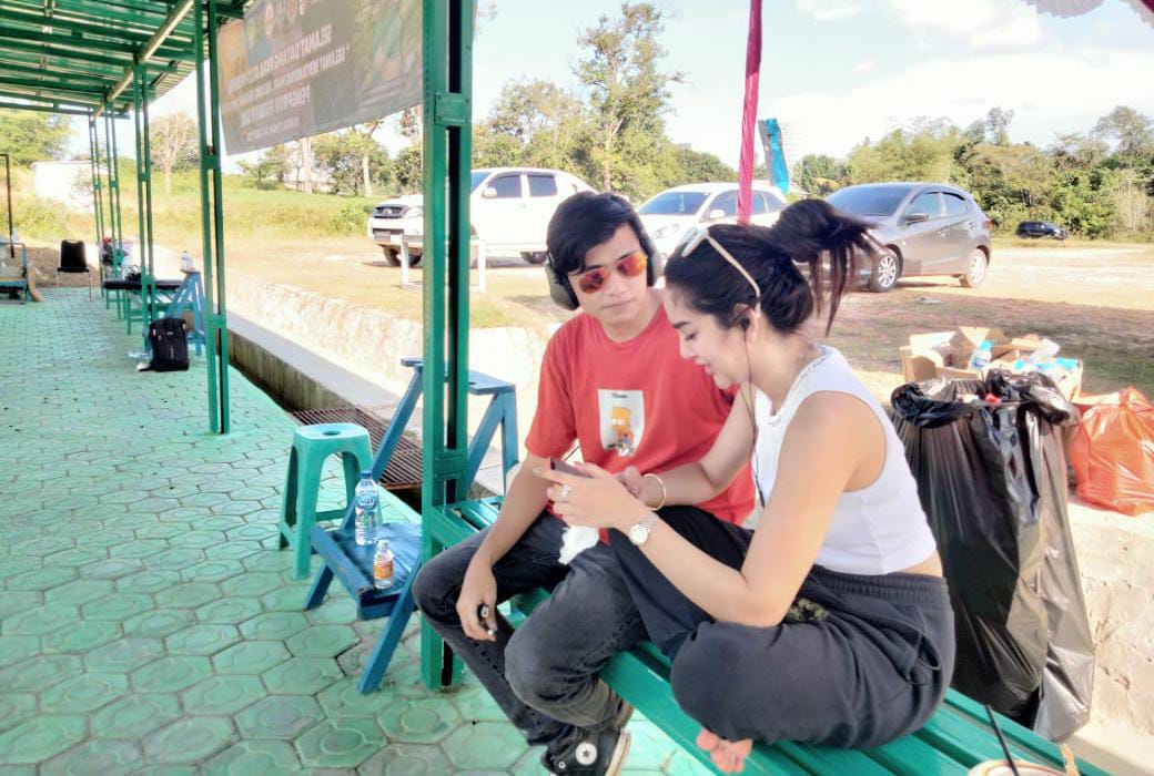Hana Hanifah dan Damara Finch tertangkap kamera Jurnalis Babel sedang berada di lapangan tembak Perbakin Provinsi Bangka Belitung.