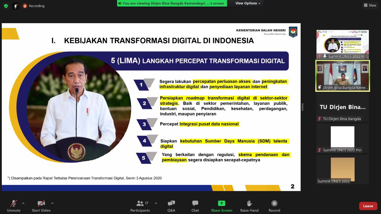 Dalam implementasi transformasi digital di daerah, ujar Teguh, Kemendagri mendukung penuh, penuh baik dalam hal perencanaan dan penganggaran, melalui pengawalan dalam penyusunan RPJMD, RKPD sampai dengan tersusunnya dan terlaksananya APBD.