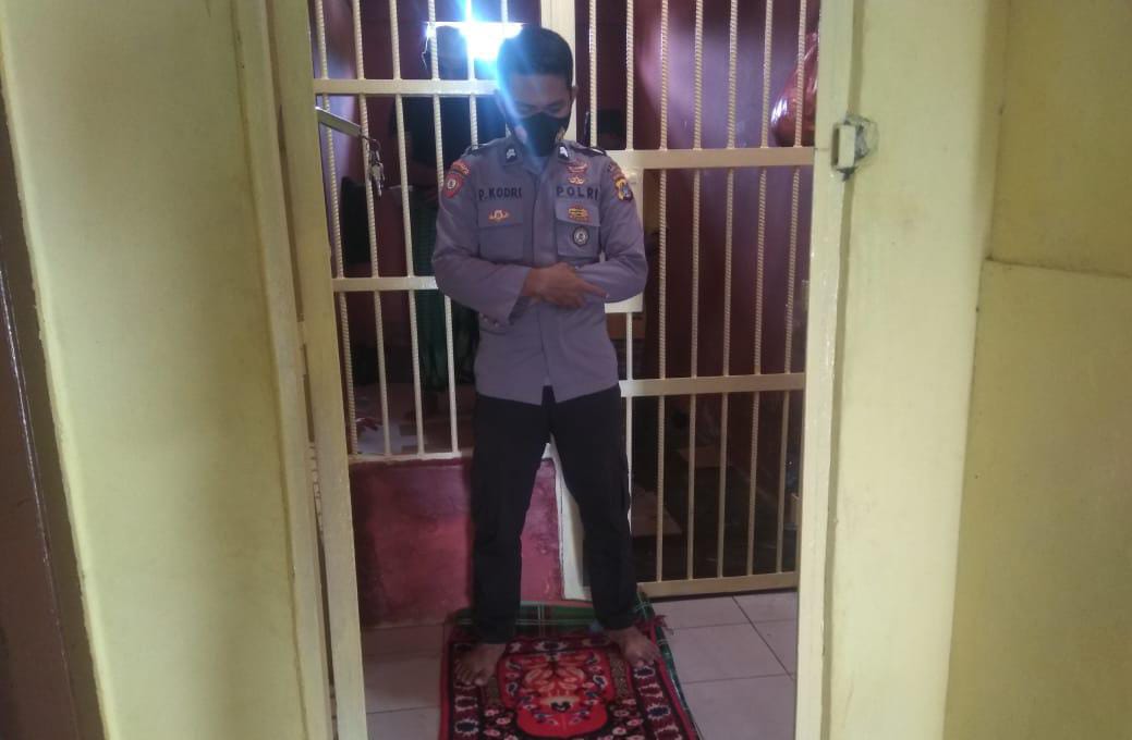 Kapolsek Tempilang IPTU Ahmad mukhlis SH SE seizin Kapolres Bangka Barat AKBP Agus Siswanto SH.SIK.MH mengajak para tahanan dan personel untuk melaksanakan shalat magrib berjamaah di dalam Mapolsek Tempilang,