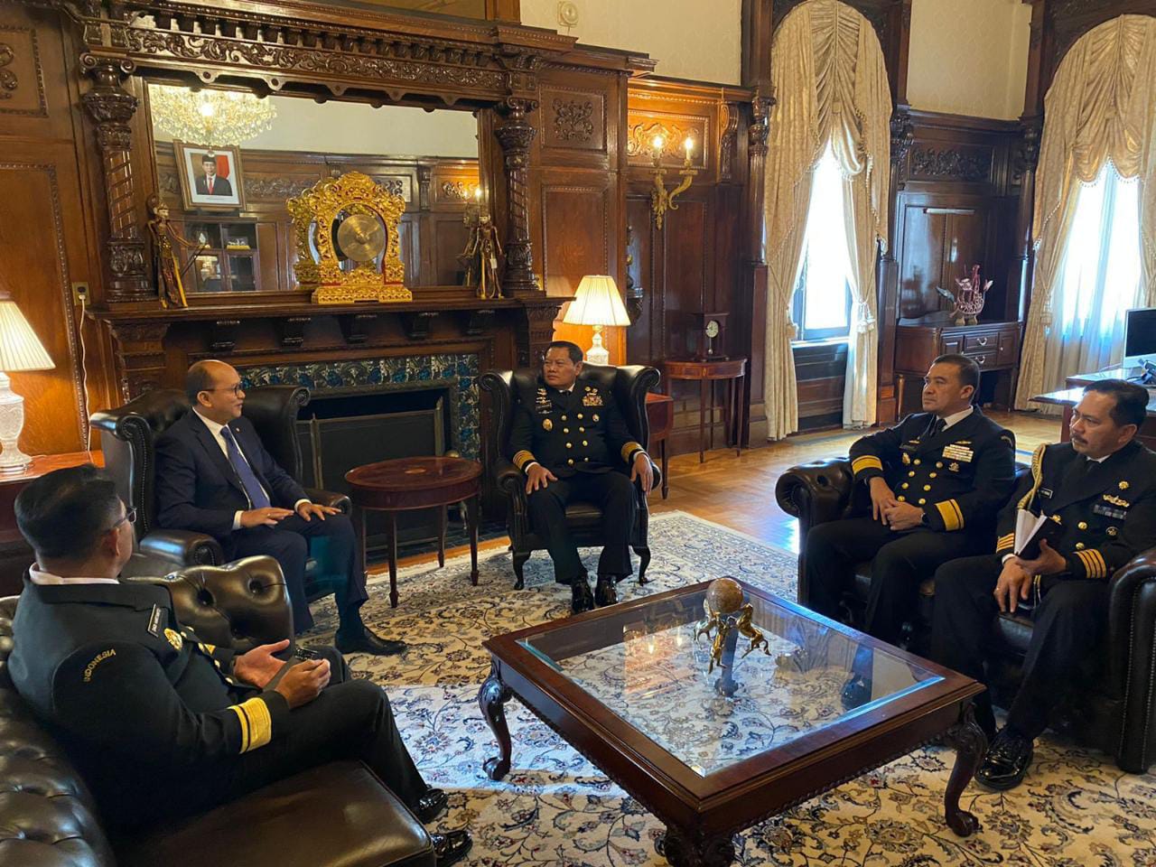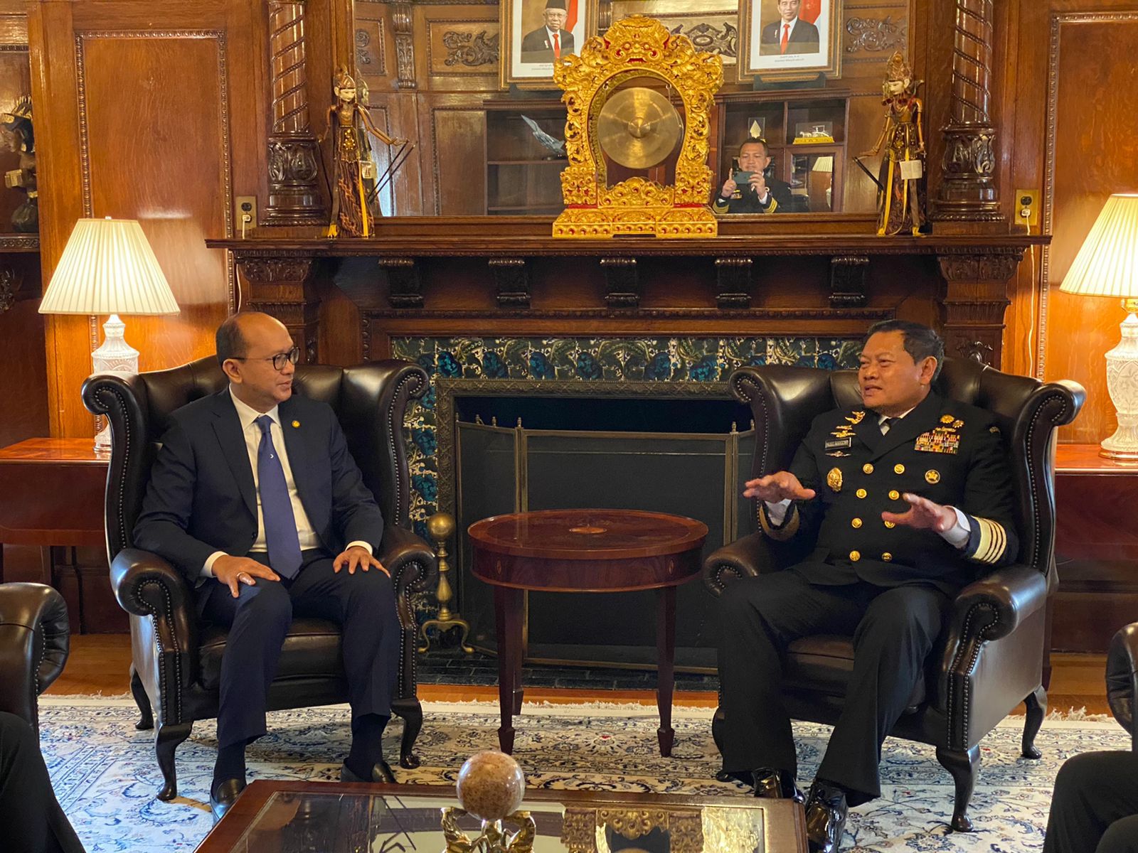 Sebelumnya Kasal juga berkesempatan bertemu dengan Duta Besar (Dubes) Luar Biasa dan Berkuasa Penuh (LBBP) Indonesia untuk Amerika Serikat, Petahana Rosan Roeslani guna membahas rencana kerja sama yang akan dilakukan Tentara Nasional Indonesia Angkatan Laut (TNI AL) dengan Angkatan Laut Amerika Serikat dalam menghadapi masalah keamanan maritim, keamanan dan stabilitas regional maupun global. (Aguz)