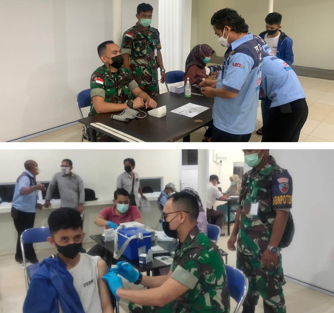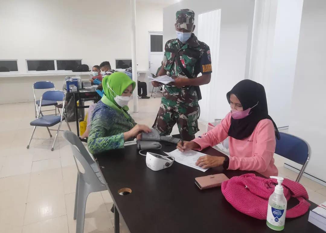 Kegiatan Vaksinasi yang di gelar oleh Lanud Hang Nadim langsung ditangani oleh Vaksinator Ps. Kepala Kesehatan (Kakes) Lanud Hang Nadim Letda Kes dr. Warong yang di hadirkan langsung oleh Komandan Pangkalan TNI Angkatan Udara Lanud Hang Nadim Batam.