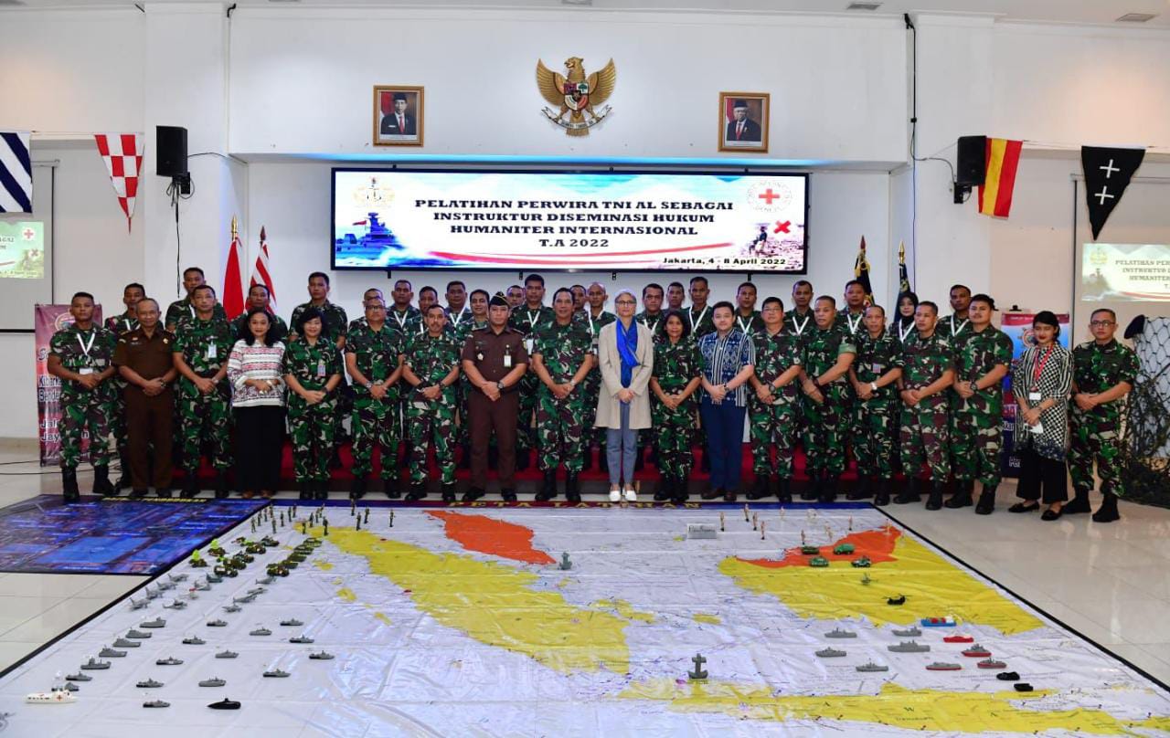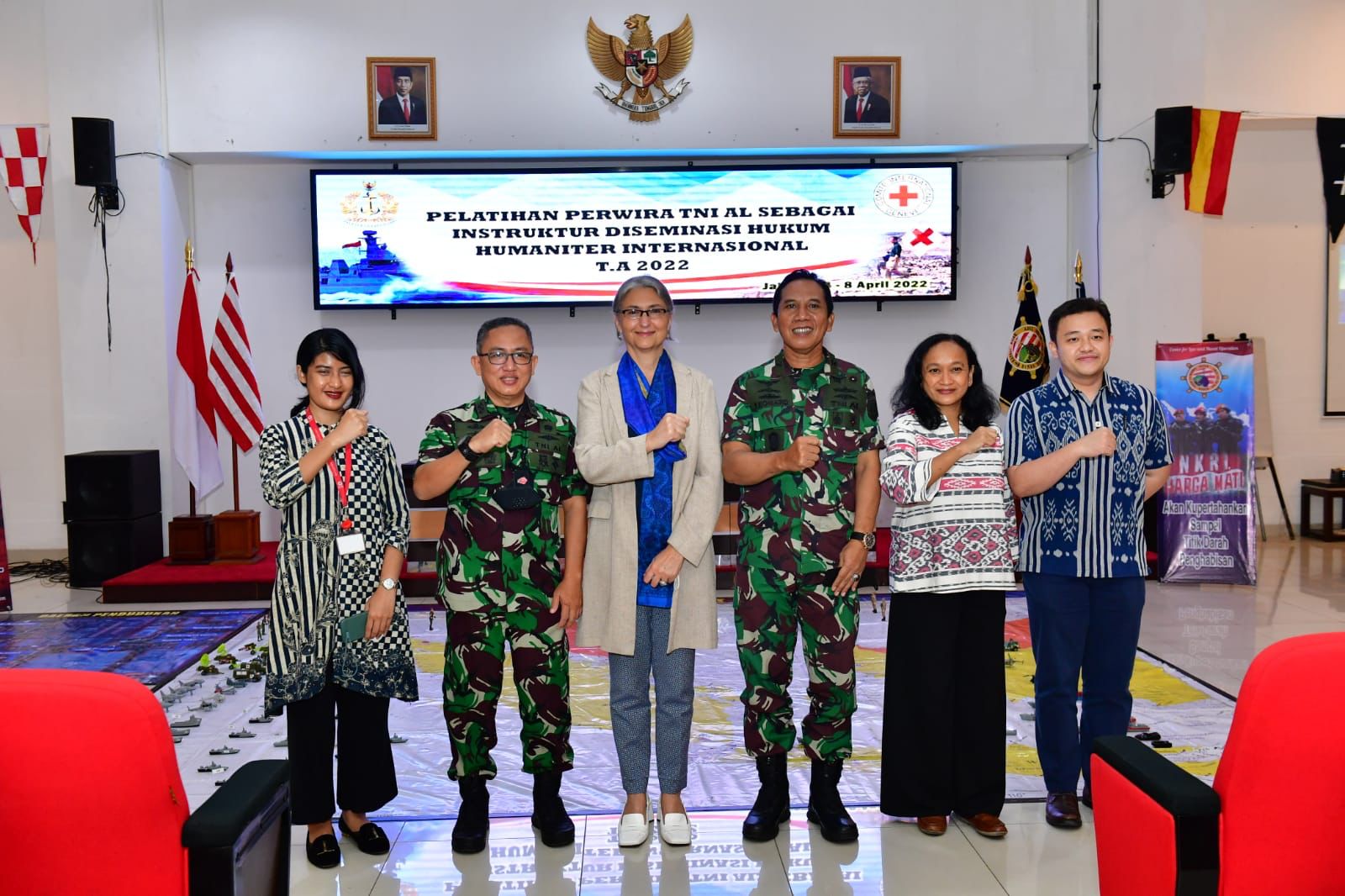 Jalesveva Jayamahe Jakarta| Jejakkriminal.com- 4 April 2022, — TNI Angkatan Laut (TNI AL) menyiapkan para Perwiranya yang akan diproyeksikan sebagai Instruktur Hukum Humaniter Internasional melalui Pelatihan Instruktur Diseminasi Hukum Humaniter Internasional yang diselenggarakan di Badiklat, Ceger, Bambu Apus, Jakarta Timur, Senin (4/4), dibuka Kepada Dinas Pembinaan Hukum Angkatan Laut (Kadiskum AL) Laksamana Pertama TNI Leonard Marpaung, S.H., M.H., didampingi Ketua Delegasi ICRC Wilayah Regional Untuk Indonesia dan Timor Leste Dorothea Krimitsas.