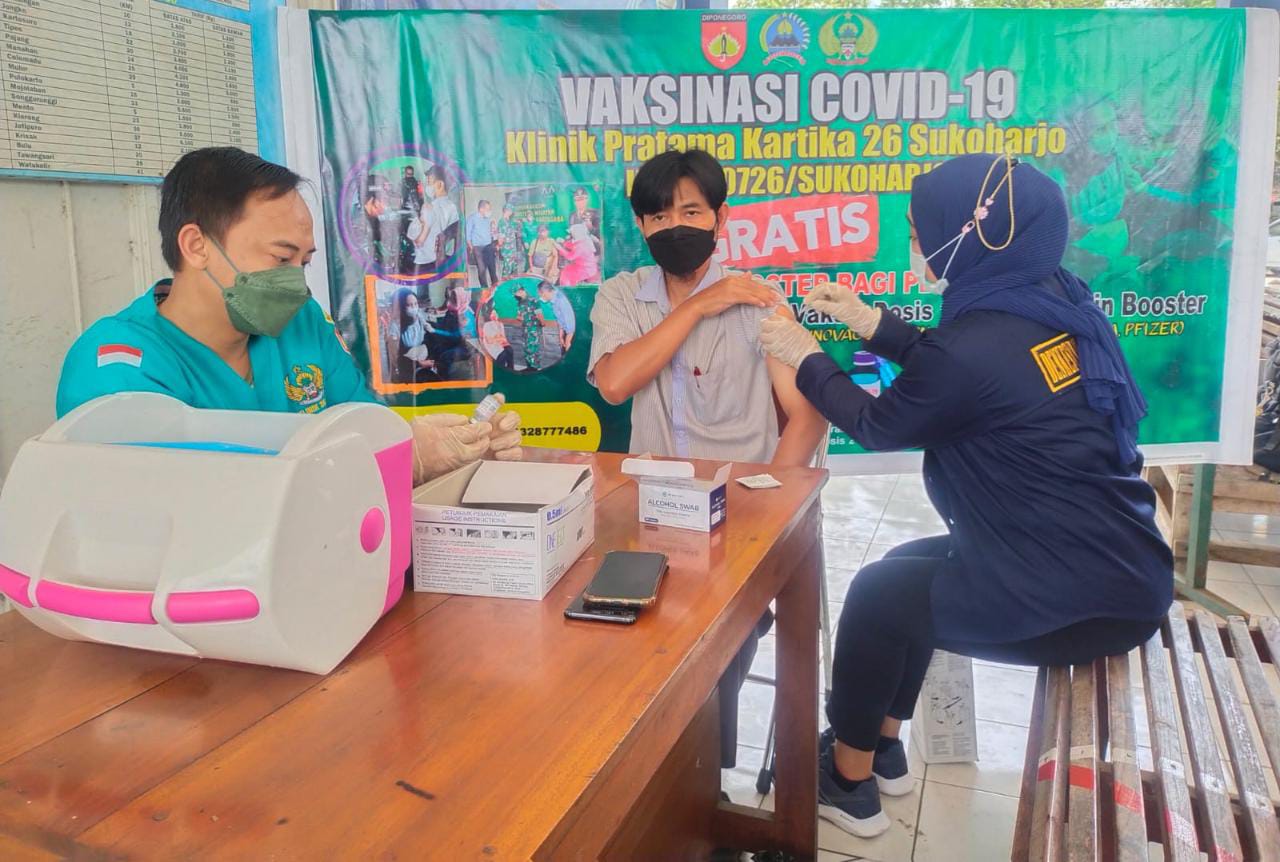 Sukoharjo| Jejakkriminal.com- (06/04/22) Dalam rangka mendukung percepatan penanggulangan covid 19 di wilayah Kabupaten Sukoharjo, Kodim 0726/Sukoharjo menggelar serbuan vaksinasi mobile bertempat di Terminal Bus Sukoharjo, Rabu (06/04/2022).