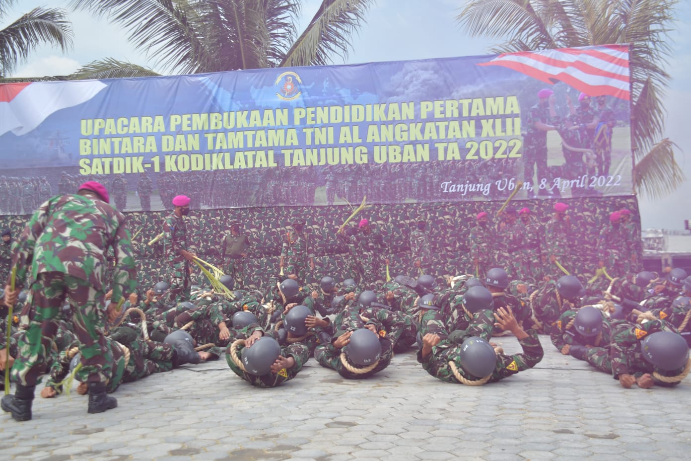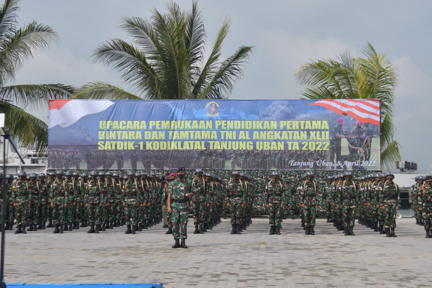 Tanjunguban| Jejakkriminal.com – Komandan Pangkalan Utama TNI Angkatan Laut (Danlantamal) IV Laksamana Pertama TNI Dwika Tjahja Setiawan, S.H., M.H., M.Tr. Opsla., hadiri Upacara Pembukaan Pendidikan Pertama (Dikma) Bintara dan Tamtama TNI Angkatan Laut Angkatan XLII Satuan Pendidikan (Satdik) – 1 Kodiklatal Tanjung Uban TA. 2022 di Lapangan Apel Gabungan Fasharkan Mentigi, Tanjung Uban, Bintan – Kepri, Jumat pagi (8/4/2022).Upacara tersebut dipimpin langsung oleh Komandan Komando Pembinaan Doktrin Pendidikan dan Latihan TNI Angkatan Laut (Dankodiklatal) Letnan Jenderal TNI Marinir Suhartono selaku Inspektur Upacara melalui upacara militer.