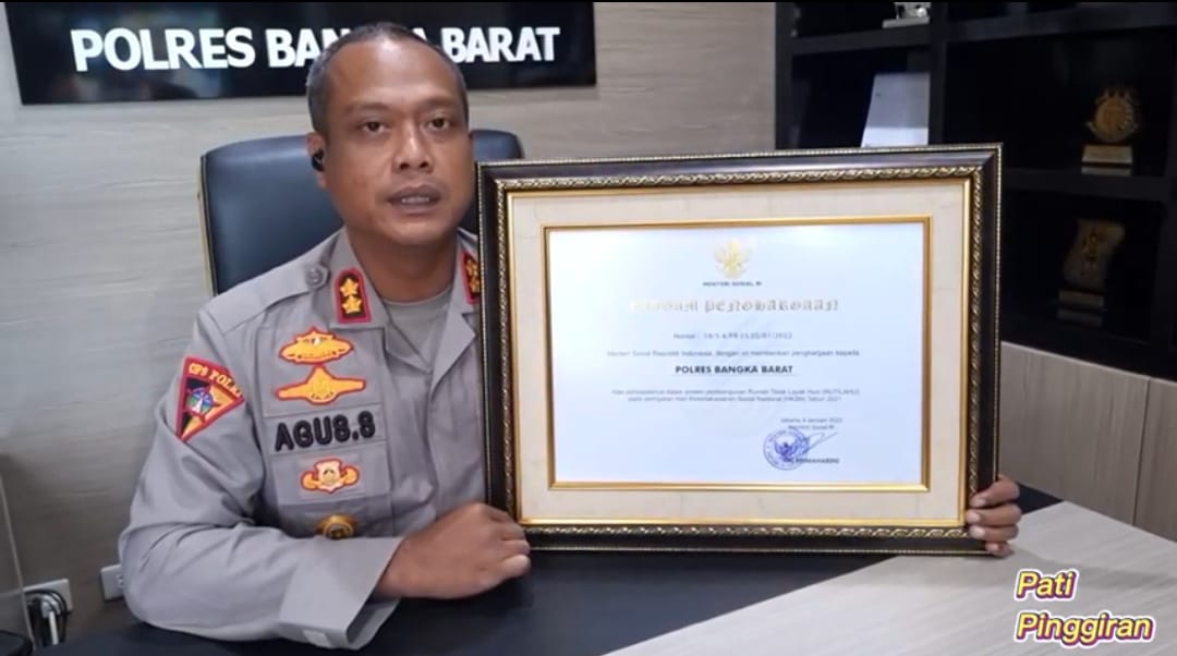 “Terimakasih hari ini saya atas nama Polres Bangka Barat mengucapkan terima kasih kepada seluruh anggota baik perwira Bintara Kabag kasih Pak Waka karena kita sudah dapat penghargaan dari ibu menteri sosial ibu Risma tentang kegiatan-kegiatan sosial yang sudah kita laksanakan selama hampir setahun di sini yang dampaknya bisa dirasakan oleh masyarakat ” ucap Kapolres Bangka Barat