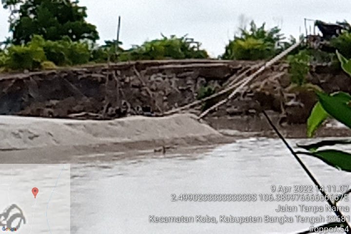 Terpantau Awak media Sabtu (09/04/2022) Pukul 14.11 Wib terlihat 5 Pront 3 Unit (TI) Tower dan 2 Unit (TI) Manual lagi beraktivitas di Daerah Aliran Sungai (DAS) Jembatan Nibung. Padahal kamarin Jum’at (25/03/2022) sudah di razia oleh Tim Gabungan Satpol -PP, Bangka Tengah dan Polres Bangka Tengah.