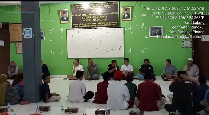 PANGKALPINANG | Jejakkriminal.com Indahnya berbagi pada bulan Romadhon untuk meningkatkan ibadah dan berlomba lomba mencari kebaikan. Forum Pers Independen Indonesia (FPII) dan Badan Keamanan Laut (Bakamla) Bangka Belitung melakukan kegiatan buka bersama dan berbagi rezeki dengan Panti Asuhan Baiturrahman Annur Parit Lalang Kecamatan Rangkui.Sabtu, 9/4/2022. Dalam sambutannya Irwansyah Sekretaris Yayasan Baiturrahman Annur menyampaikan,disini saya mewakili dari pengurusan yayasan Baiturrahman Annur pertama saya ucapkan banyak terima kasih kepada bapak bapak ,ibu ibu dari FPII dan Bakamla Babel yang telah sudi mempercayai kami untuk melakukan buka bersama diaula yayasan ini.