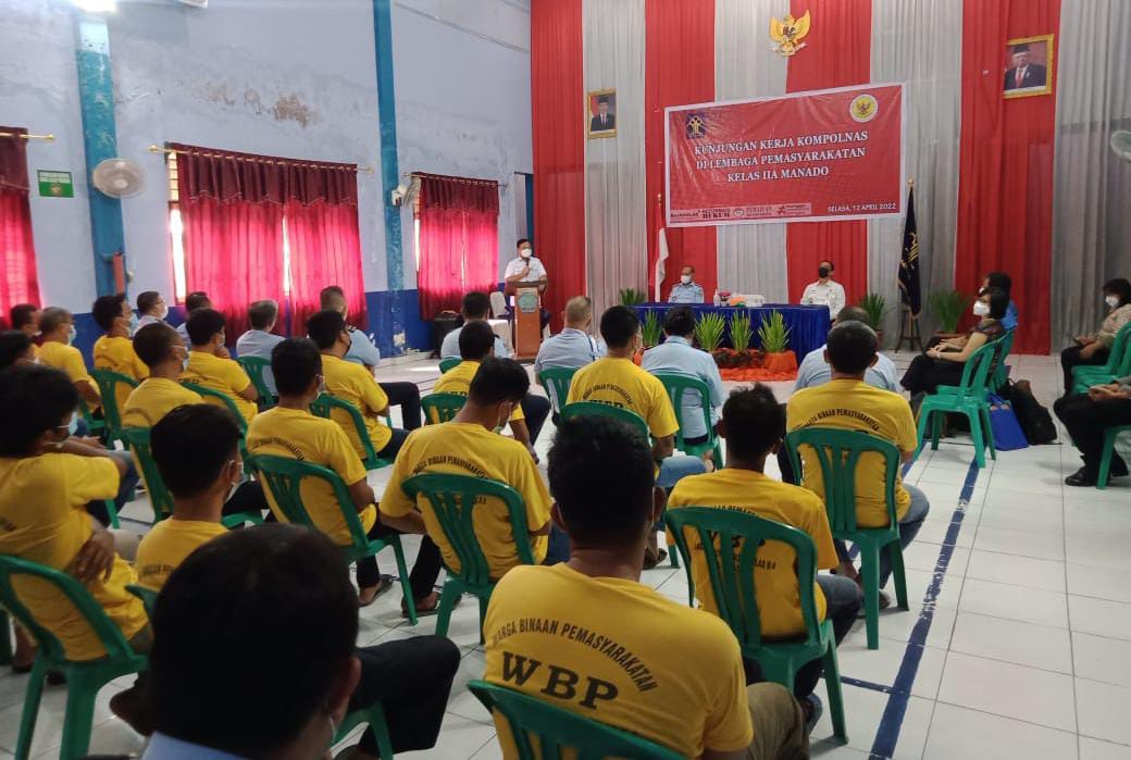 MANADO| Jejakkriminal.com- Kepala Lapas Manado Amri Langkamane, Bc.IP, SPd menerima kunjungan kerja Komisi Kepolisian Nasional (Kompolnas) bersama tim kerja yang dipimpin Sekertaris Kompolnas Irjen Pol (Purn) Benny Jozua Mamoto di Lapas Manado, Selasa 12 April 2022.
