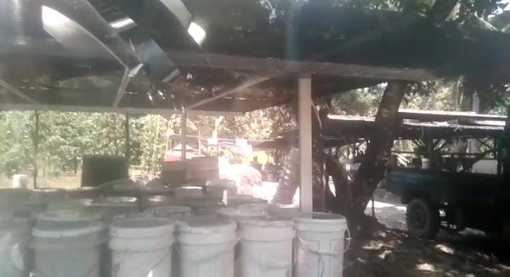 Pantauan Awak media Rabu (13/04/2022) Pukul 12.25 Wib terlihat tiga tungku yang masih panas dan Ratusan timba warna putih dan puluhan Drum warna biru diduga berisi Arak dan juga terlihat tiga orang lagi berporduksi Arak.Awak media konfirmasi ke salah satu perkerja pabrik Arak untuk mempertanyakan pabrik Arak punya siapa akan tetapi perkerja tidak ada komentar .