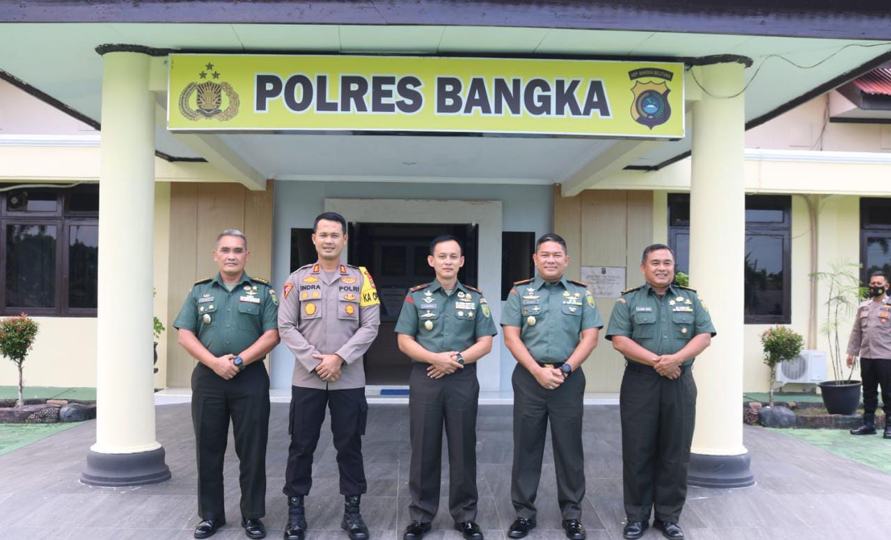 Sungailiat| Jejakkriminal.com – Danrem 045/Gaya Brigjen TNI Ujang Darwis, MDA berkunjung ke Polres Bangka dalam rangka silaturahmi dan sinergitas, Rabu (13/04/2022.)Dalam kegiatan tersebut langsung disambut oleh Kapolres Bangka AKBP Indra Kurniawan, SH.,S.I.K., M.Si,.beserta pejabat Polres Bangka dan turut hadir pula Kasiintel Kasrem 045/Gaya Kolonel Inf Dikdik Sadikin, Dandim 0413/Bangka Kolonel Inf Denny Noviandi , Pabung Bangka Letnan kolonel Arm Bontor Karokaro.