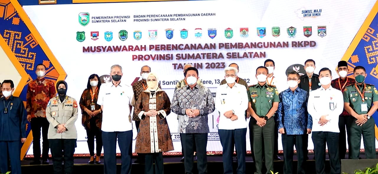 Hal ini diungkapkannya saat menghadiri acara Musrenbang RKPD Provinsi Sumatera Selatan Tahun 2023, di Hotel Santika Premiere Palembang, Sumatera Selatan, Rabu (13/04/2022).Musrenbang dilaksanakan secara hybrid (daring dan luring) yang dihadiri oleh Gubernur dan Wakil Gubernur Sumatera Selatan, Ketua DPRD Provinsi Sumatera Selatan, Menteri Dalam Negeri yang diwakili Direktur Jenderal Bina Pembangunan Daerah, Menteri PPN/Kepala Bappenas yang diwakili Plt. Deputi Bidang Pembangunan Manusia para bupati/walikota dan ketua DPRD se-Provinsi Sumatera Selatan, Kepala BPK wilayah Sumatera Selatan, Kepala LKPP secara onling/daring, jajaran Forkopimda Provinsi Sumatera Selatan, Anggota DPR dan DPD Dapil Sumatera Selatan, Sekda, Kepala Perangkat Daerah, Kepala Instansi Vertikal, Kepala Bappeda se-Sumatera Selatan, Pimpinan BUMD, para akademisi, serta tokoh masyarakat, tokoh agama dan pers.