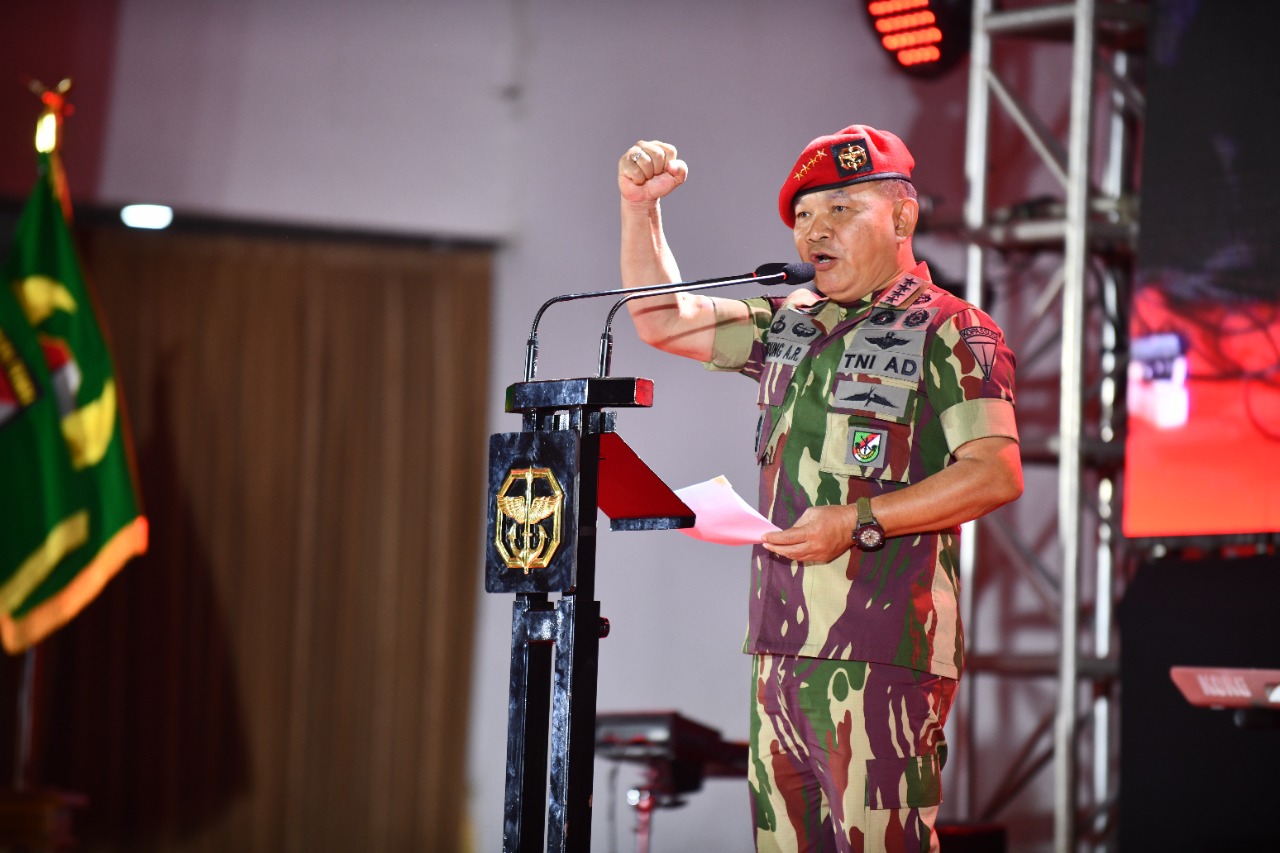Dalam sambutannya Kasad mengatakan, berdasarkan sejarah maupun pengalaman selama bertugas, ia melihat satuan Kopassus selalu berhasil dan mengukir sejarah sehingga ini menjadi kebanggan kita semua sekaligus menjadi tantangan bagi generasi penerus mengingat musuh saat ini tidak terlihat, sehingga perlu melakukan langkah antisipasi dengan senantiasa memantau perkembangan situasi dan siap operasional sewaktu-waktu.