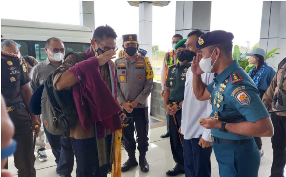 Pangkalpinang| Jejakkriminal.com-Danlanal Bangka Belitung Letkol Laut (P) Dadan Hamdani, S.Tr. Hanla., CTMP., CRMP., CIQaR mendampingi Gubernur Provinsi Kep Babel Dr. H. Erzaldi Rosman, S.E, M.M, bersama unsur Forkopimda Prov.Kep.Babel menyambut kedatangan menteri Pariwisata dan Ekonomi Kreatif RI Bapak Sandiaga Uno di ruang VIP Bandara Depati Amir Pangkalpinang. (Rabu, 20 April 2022)