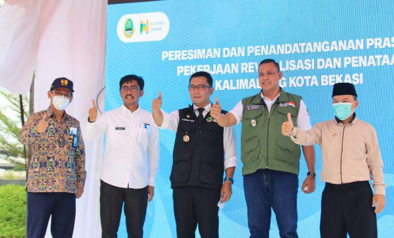Kota Bekasi | Jejakkriminal.com– Selepas acara peresmian Pasar Jabar Juara dan mengunjungi Kampung Bali di Harapan Jaya, Plt Wali Kota Bekasi Tri Adhianto bersama Gubernur Jawa Barat Ridwan Kamil menghadiri acara peresmian fasilitas umum Taman Tarum Bhagasasi, Kalimalang, Kota Bekasi Jawa Barat.