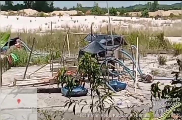 Koba|jejakkriminal.com-Aktivitas tambang timah ilegal yang beroperasi di pinggir jalan raya dekat jambatan Pal Besi sebelum Danau Kaolin Atau Danau Biru Desa Nibung Kecamatan Koba kabupaten Bangka Tengah Provinsi Kepulauan Bangka Belitung.Dari pantauan Awak media Jum’at (22/04/2022) Pukul 11.47 Wib terlihat beberapa mesin (TI) User -user dan Tungau lagi beraktivitas di pinggir jalan raya berjarak sekitar kurang lebih 3 meter.