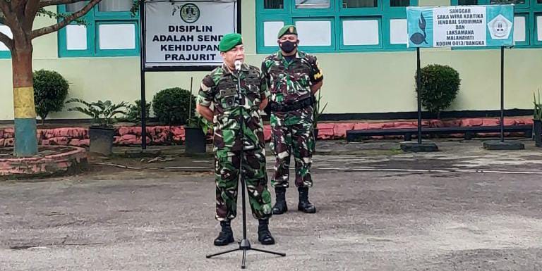 Pangkalpinang | Jejakkrminal.com – Usai melaksanakan Cuti lebaran, Komandan Kodim 0413/Bangka Kolonel Inf Denny Noviandi memimpin langsung apel pengecekan selesai Cuti Bersama lebaran Hari Raya Idul Fitri 1443 Hijriah di lapangan Apel Makodim 0413/Bangka, senin (9/5/2022).