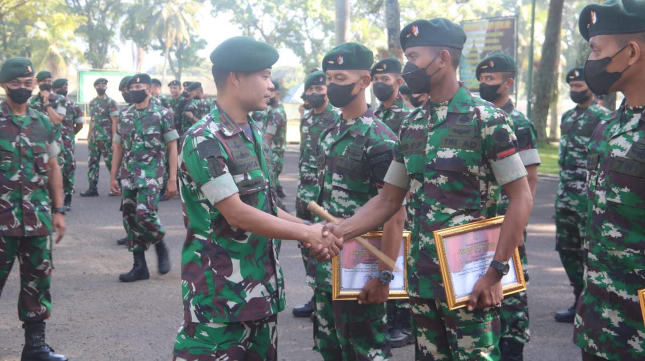Cianjur| Jejakkriminal.com- Komandan Batalion Infanteri Raider 300/Brajawijaya, Mayor Inf Afri Swandi Ritonga, memberikan penghargaan kepada lima orang prajurit berprestasi pada latihan Raider di Pusdiklat Passus Ta.2022, bertempat di Markas Batalion Inf Raider 300/Brajawijaya, Cianjur, Jum’at (13/5/2022).Penghargaan kepada prajurit berprestasi diberikan kepada lima orang yang telah meraih predikat terbaik dalam Pendidikan Pembentukan Raider Gelombang I TA.2022, yaitu Serda Devi Rasenda (Bintara terbaik), Serda Fernando (Bintara 3 terbaik), Pratu Lovan (Renang Militer Tercepat Kategori Tamtama), Prada Titis Purwo (Tamtama 2 Terbaik), dan Prada Yudistira ( Navigasi darat Tercepat Kategori Tamtama).