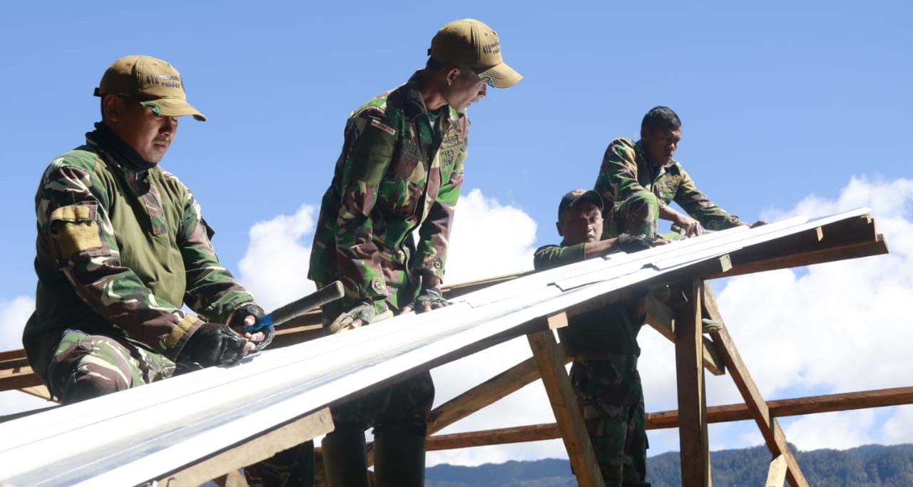 Bertugas Di pedalaman Papua Satgas Yonif Mr 412 KOSTRAD Bantu Pembangunan Rumah Milik Pendeta