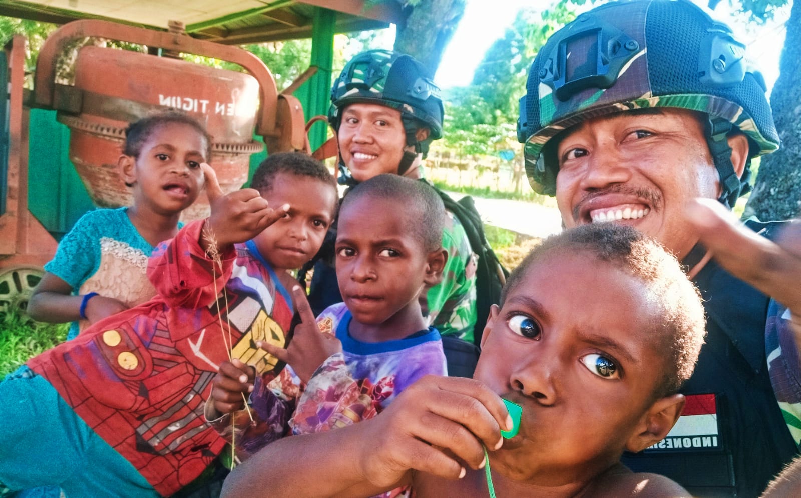 “Terima kasih Om tentara, setiap main pasti ada roti ya Om Tentara, senang kita Om tentara,” kata mereka bersama-sama.(Agus)