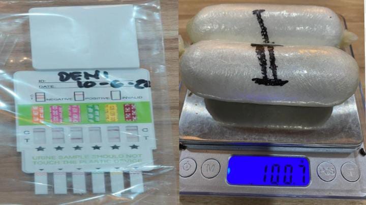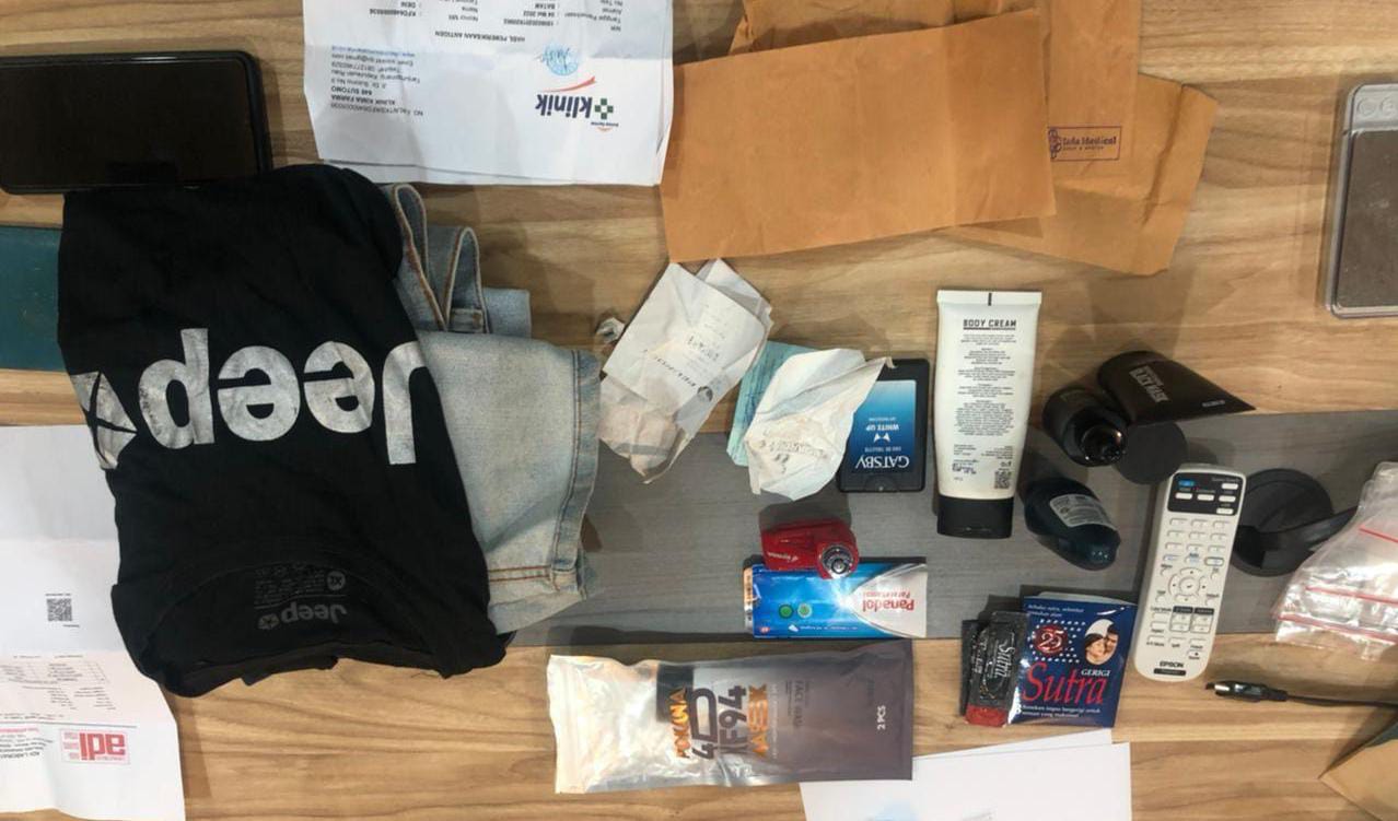 Sementara beberapa barang bukti berupa 2 (dua) buah paket narkoba jenis Metamphetamine dengan jumlah berat 100,7 gram, alat bong dan tespek hasil test urine, E-Ticket Citilink dan Lion Air, hasil rontgen, identitas diri berupa Paspor dan fotocopy KTP masih diamankan.