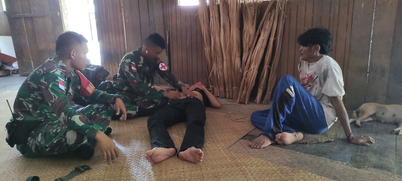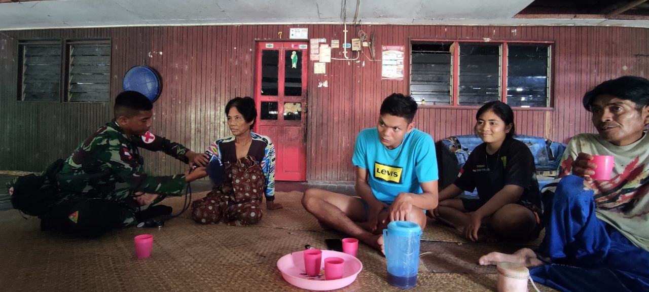 Kegiatan pengobatan gratis yang dilaksanakan di Pos Kapar dibawah pimpinan Danpos Serda Alesandro dan Prada Angling Darma sebagai Takes Pos Kapar.