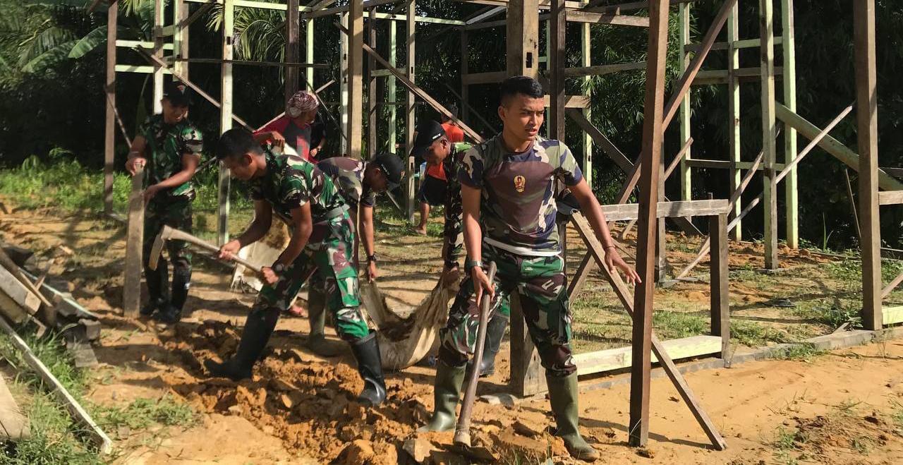 Satgas Pamtas RI-Malaysia Yonarmed 19/105 Trk Bogani Bantu Masyarakat Membangun Gereja Di Perbatasan.
