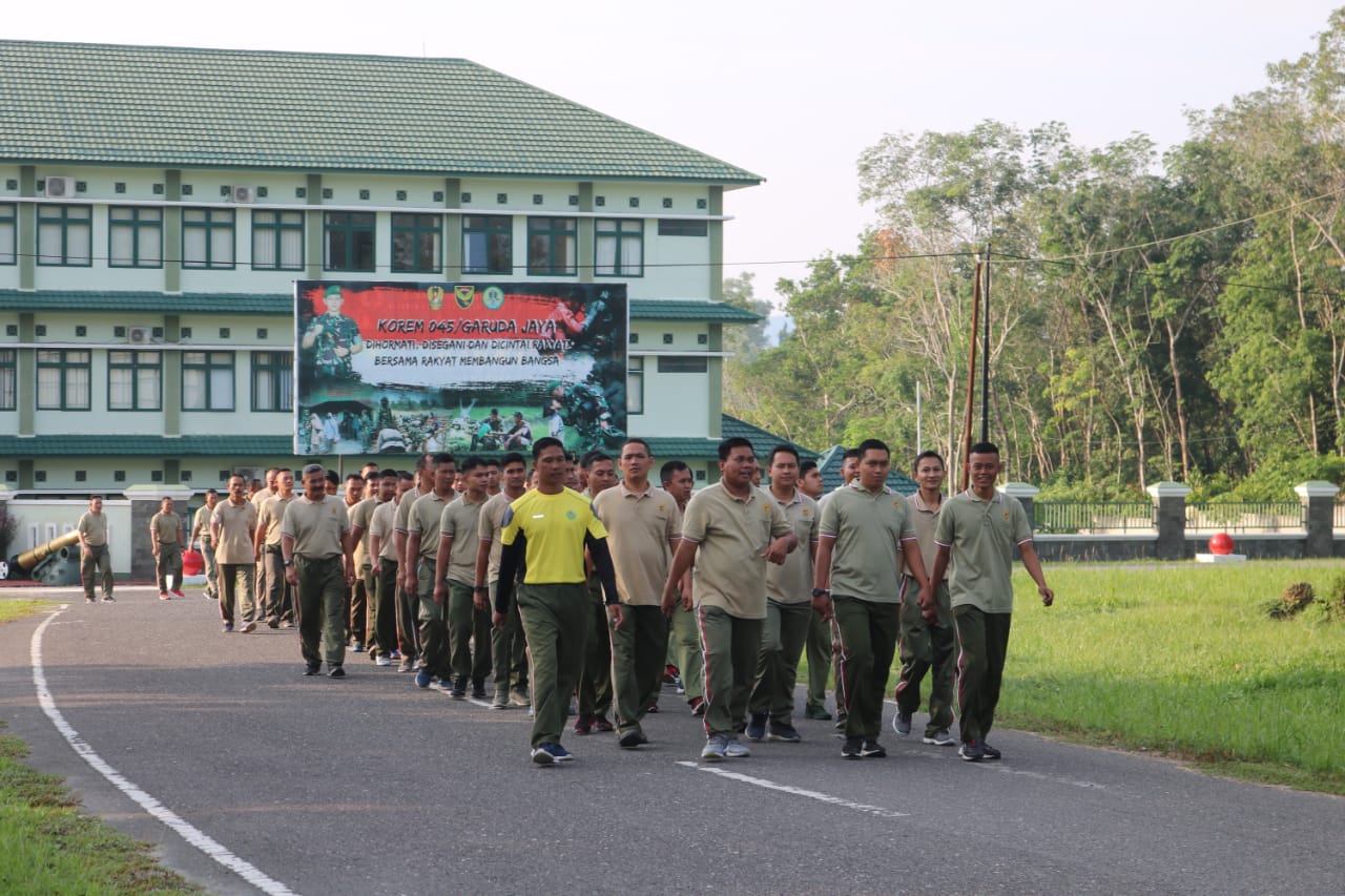 Menjaga Kebugaran Prajurit Korem 045/Gaya Laksanakan Olahraga