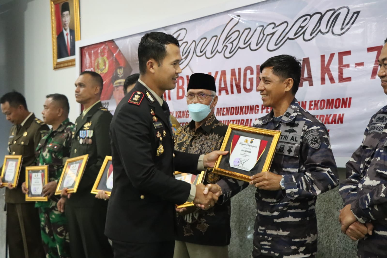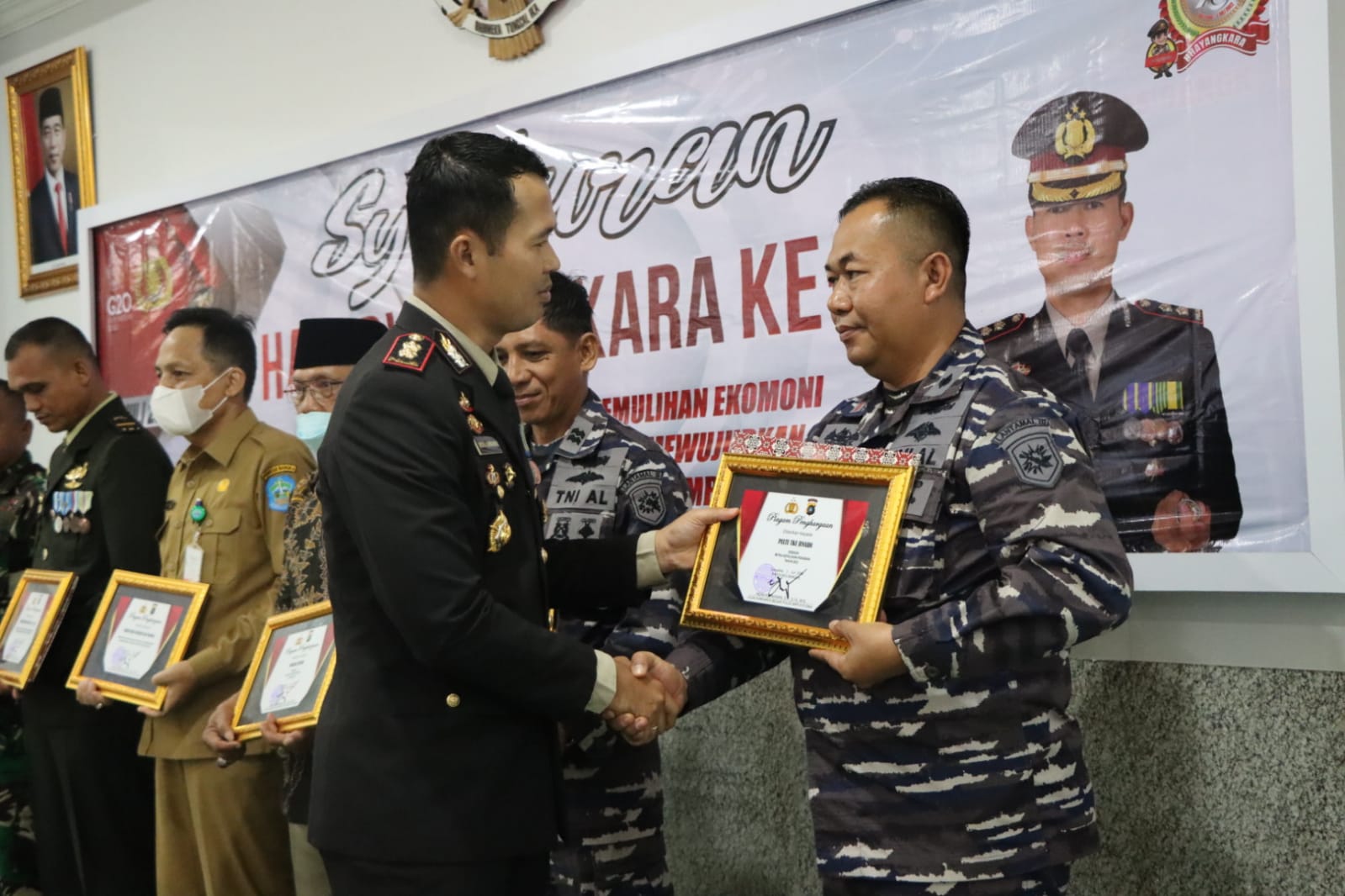 Pemberian piagam penghargaan kepada Mitra Polri khususnya Posmat TNI AL yang ada di wilayah hukum Polres Bangka yang di langsung diserahkan oleh Kapolres Bangka AKBP Indra Kurniawan, SH, S.I.K, M.Si kepada Danposmat TNI AL Belinyu Peltu Junaidi dan Danposmat TNI AL Sungailiat Peltu Darsidi.