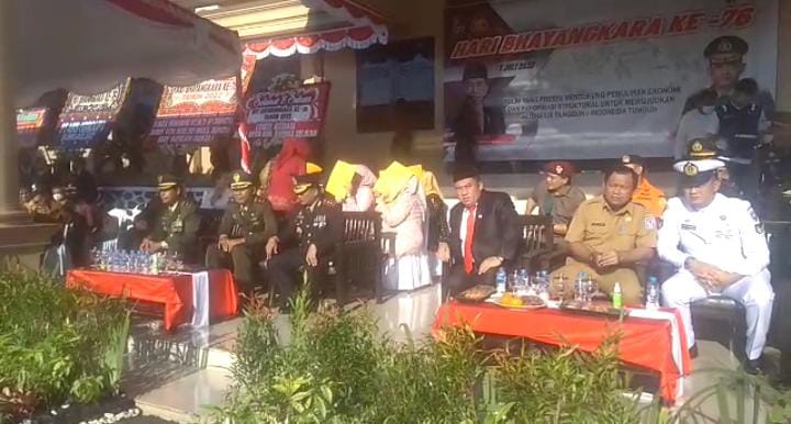 Dalam Kegiatan Hari HUT Bhayangkara Yang Ke-76 Di Polres Bangka Selatan Ini Tersebut Dan Di Hadiri Kapolres Bangka Selatan, Wakapolres Bangka Selatan, Ibu Ketua Bhayangkari Cabang Bangka Selatan, Kajari Bangka Selatan, Asisten1Bupati Kabupaten Bangka Selatan, Seluruh Pawira Polres Bangka Selatan, Pabung 0413/Bangka, Kasat Reserse Polres Bangka Selatan, Kasat lntel Polres Bangka Selatan, Kasat Lantas Polres Bangka Selatan, Kasat Narkoba Polres Bangka Selatan, Seluruh Kapolsek Yang Di Polres Bangka Selatan, Seluruh OPD Pengkap Kabupaten Bangka Selatan, Seluruh Koramil Yang Ada Di Kabupaten Bangka Selatan, Danpos TNI AL Toboali, Bangka Selatan, Polairud Polres Bangka Selatan, Seluruh Anggota Polres Bangka Selatan, Intansi Awak -awak Media.Dan Dalam Kegiatan Hari HUT Bhayangkara Yang Ke-76 Seluruh Di Indonesia Mau Pun di Polres Bangka Selatan Dan Juga Mendengar Arahan Lansung Dari Presiden RI Ir.H. Joko Widodo