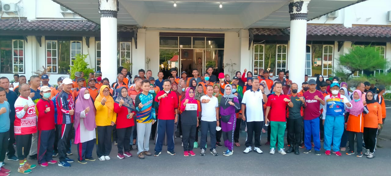 Sungailiat| Jejakriminal.com- Di Halaman Kantor Pemkab Bangka Kecamatan Sungailiat kabupaten Bangka Provinsi Kepulauan Bangka Belitung Pada Hari Jum’at Pagi (08/07/2022). Dalam Kegiatan Senam Pagi Dan Memberi Bantuan Bingkisan Kepada Pekerja Petugas kebersihan Ini Tersebut Dan Di Hadiri Bupati Bangka, Ibu Ketua PKK kabupaten Bangka, Sekda Kabupaten Bangka, Aisten 1 Pemkab Bangka, Aisten 2 Pemkab Bangka, Aisten 3 Pemkab Bangka, Dan Seluruh OPD Pemkab Bangka, Prosonil Pekerja Petugas kebersihan.