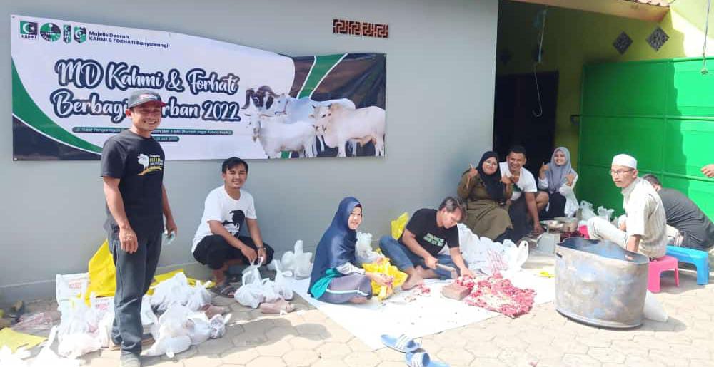 Panitia Qurban MD Kahmi dan Forhati Banyuwangi Tahun 2022 daging Qurban kami distribusikan langsung ke masyarakat salah satunya di Kelurahan sobo lingkungan Wonosari dan Desa Grogol serta keluarga besar MD KAHMI Banyuwangi dengan total 500 bungkus daging. ungkap Nuril Wijayanto.S.Pd sekretaris panitia