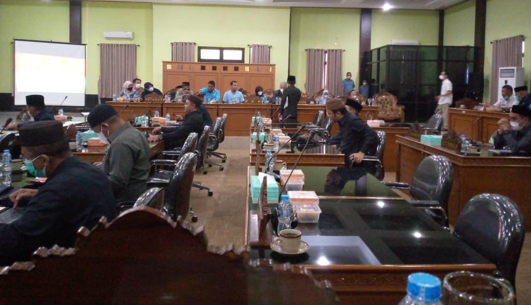 Dengan susunan acara Sambutan ketua DPRD Kabupaten Bangka tengah ( Ibu Mei Hoo ), Sambutan Bupati Bangka tengah ( Bpk.Algafari Rahman ), Pembacaan Daftar Masing-masing Fraksi yang hadir oleh Sekwan DPRD Bangka tengah, Penyampaian Pendapat Akhir dan pandangan dari Masing-masing Fraksi tentang pengesahan 2 RAPERDA yang di setujui .Adapun tamu yang hadir dalam giat tersebut Bupati Bangka tengah, Kajari Bangka tengah , Ketua DPRD Bangka tengah, Wakil ketua DPRD Bangka tengah, Kapolres Bangka tengah di wakili Kabag Ops, Pgs.Danramil 413-04/Koba, Sekwan DPRD Bangka tengah, Sekda Kabupaten Bangka tengah, Para ketua Masing-masing Fraksi DPRD Bangka tengah, Dirut PDAM Bangka tengah, Danpos Lanal Koba, Ketua Knpi Bangka tengah, Para Camat jajaran Kabupaten Bangka tengah, Kasat pol PP Bangka tengah, Para Toga , Tomasy , Toda Wilayah Kabupaten Bangka tengah. (Red)