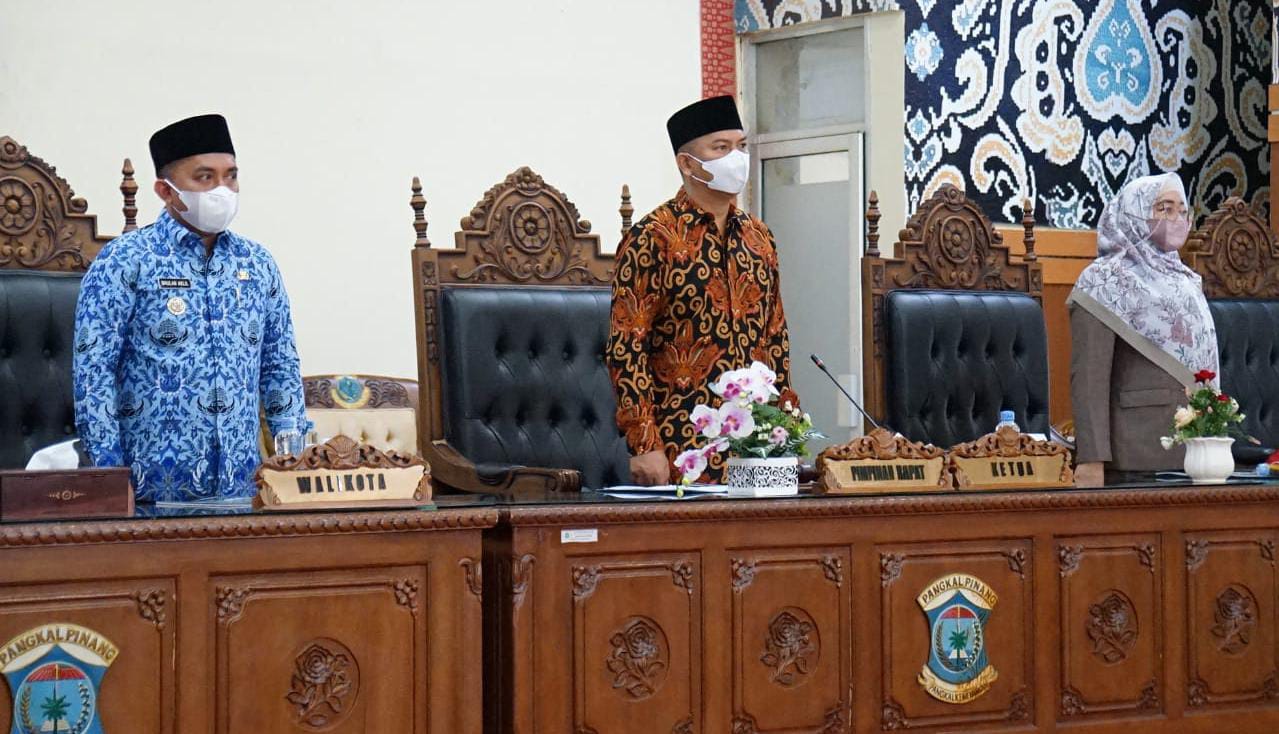 PANGKALPINANG| Jejakkriminal.com — Wali Kota Pangkalpinang, Maulan Aklil menghadiri Rapat Paripurna ke-23 Masa Persidangan III, di Ruang Sidang Paripurna DPRD Kota Pangkalpinang, Senin (18/7/2022).
