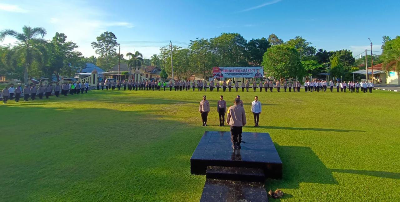 Kesempatan Apel tersebut Kapolres Bangka Akbp Indra Kurniawan, S.H.,S.I.K.,M.Si melalui Waka Polres Bangka Kompol R.Wardhana Utama,S.I.K., menjelaskan melalui kebersamaan, soliditas internal kita dan sinergitas eksternal maka kita bisa mencapai prestasi dan selalu beribadah tepat waktu baik yang beragam Islam atau Kristen.