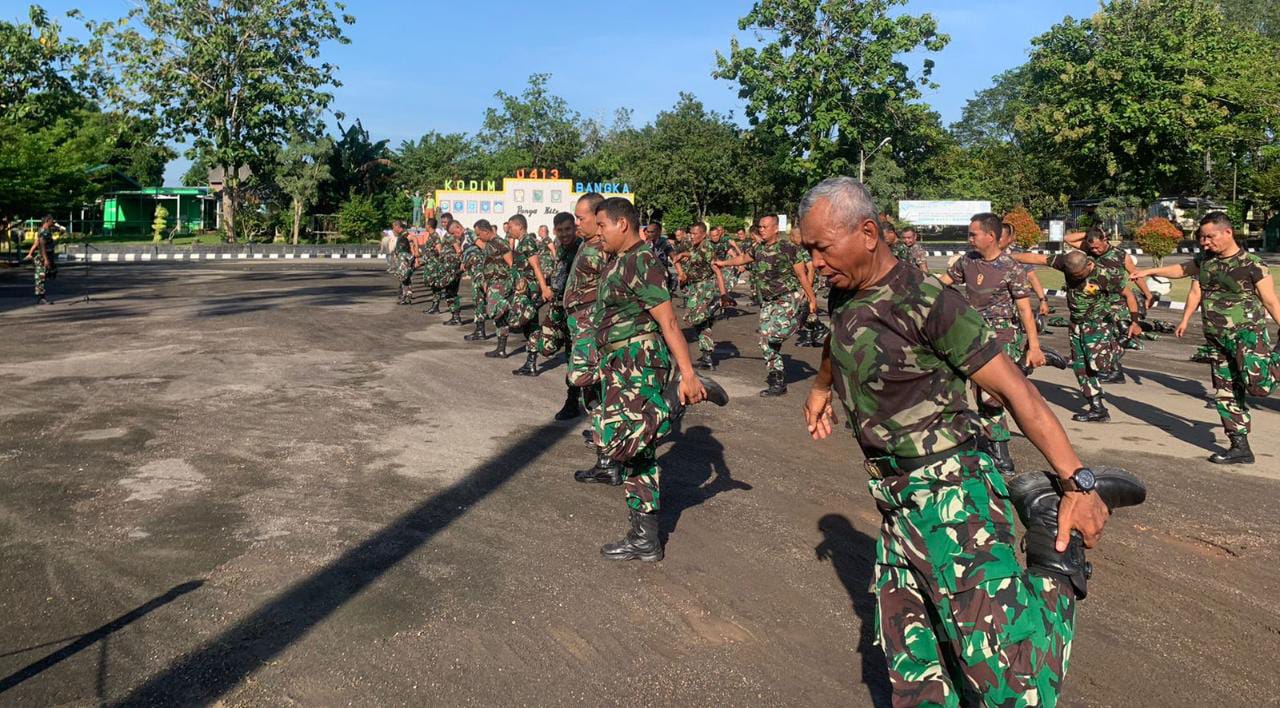 Sebelum melaksanakan Kegiatan Kasdim 0413/Bka Letkol Inf Rudiyanto mengambil apel pagi pengecekan personel dilanjutkan melakukan peregangan otot, supaya tidak kaget atau hal lain yang dapat membuat cedera tubuh saat melakukan lari ataupun kegiatan fisik lainnya di pimpin oleh anggota Staf Ops Kodim 0413/Bka Serka Asnari.