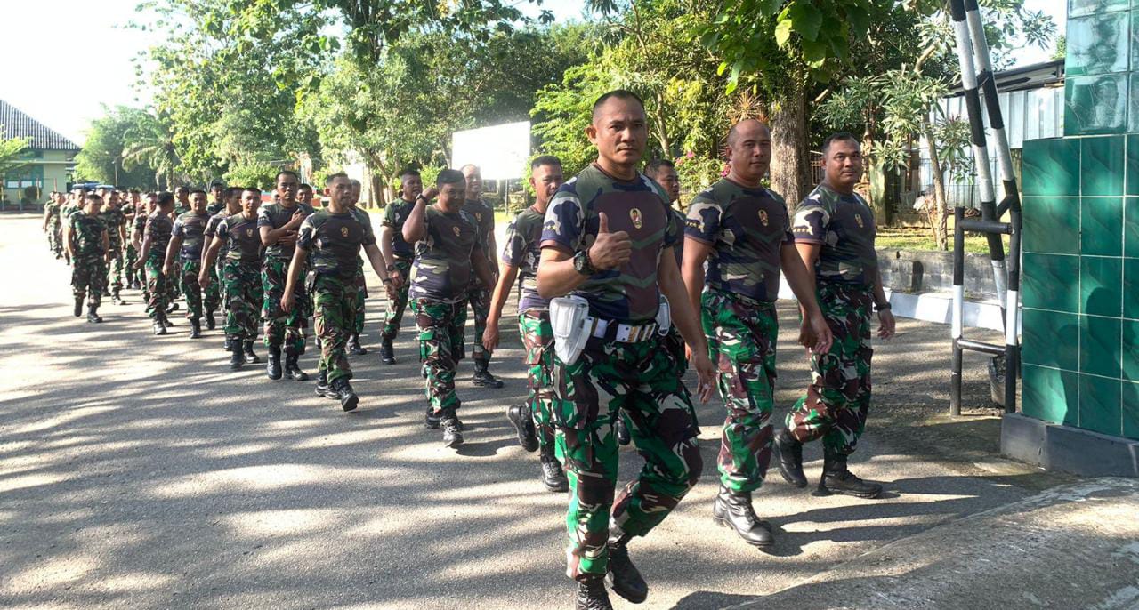 Pangkalpinang | Jejakkriminal.com – Anggota Kodim 0413/Bka Melaksanakan olahraga lari jalanan setelah selesai melaksanakan Upacara mingguan di Pimpin Pjs. Pasi Ren Kodim 0413/Bka Kapten Cpl Sudarmadi. Senin (25/07/2022)