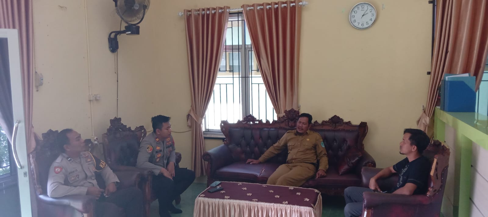 Kemudian disisi lain kami dari kepolisian juga terkait dengan program ferolfing kemudian freventib dan yang terakhir penanganan hukum, untuk kegiatan patroli juga kita rutin pada pagi hari jam 9-10, sore hari kemudian malam hari, itu kita lakukan patroli dirawan terjadinya tidak pidana, terutama untuk rekan rekan kades wajib memasang CCTV di kantor nya”.