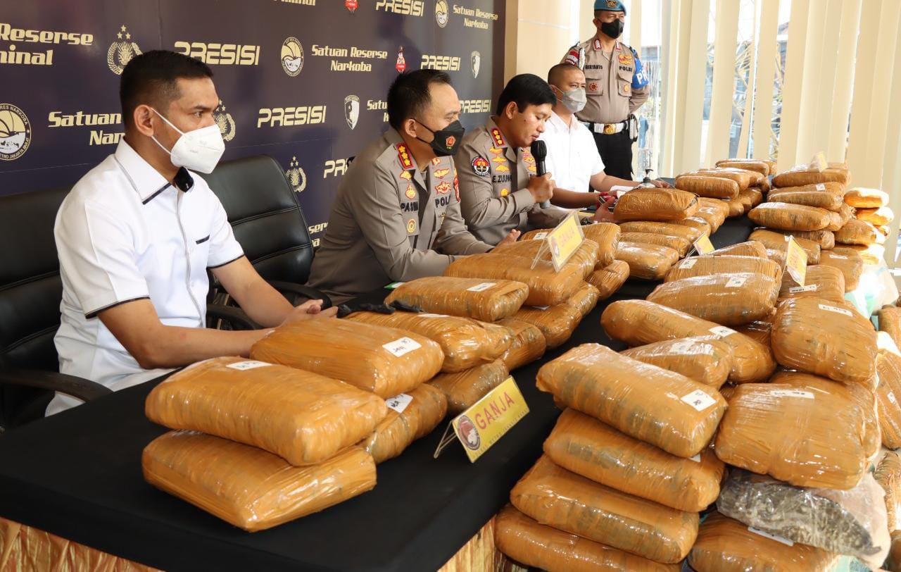Dibawah pimpinan Kasatres Narkoba Akbp Akmal dan kanit 3 Akp Laksamana berhasil mengamankan 2 orang pelaku yang bertugas selaku kurir berikut 150 paket dengan berat 137 kg ganja kering