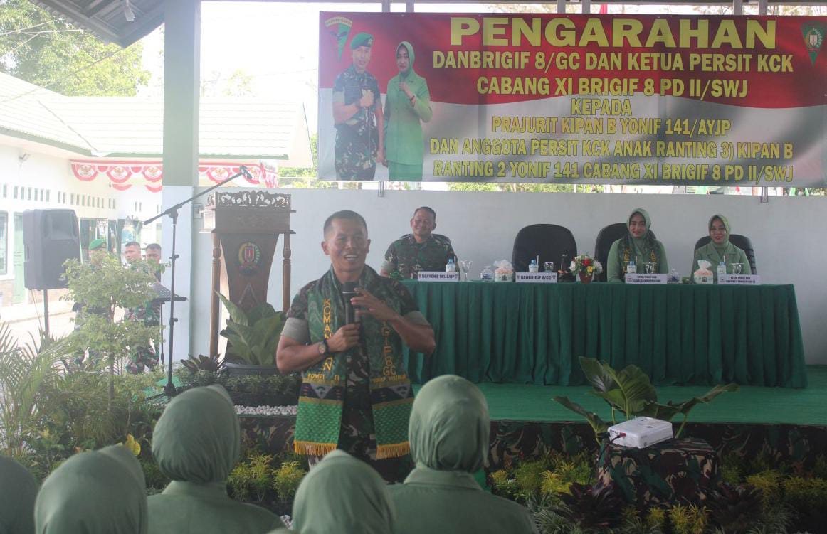 Bangka| Jejakkriminal.com- Kamis 25 Agustus 2022 Komandan Brigade Infanteri 8/Garuda Cakti Letnan Kolonel Inf Tuwadi, S.E., M.I.Pol didampingi Ketua Persit KCK Cabang XI Brigif 8 PD II Sriwijaya Ny. Nova Tuwadi dan Komandan Batalyon Infanteri 141/Aneka Yudha Jaya Prakosa Mayor Inf Arie Prasetyo Widyo Broto S.E di dampingi ketua persit KCK Ranting II Yonif 141/AYJP Cabang Xl Brigif 8 PD ll Sriwijaya Melaksanakan Kunjungan Kerja (Kunker) di Kompi Senapan B Yonif 141/AYJP Brigif 8/Garuda Chakti.
