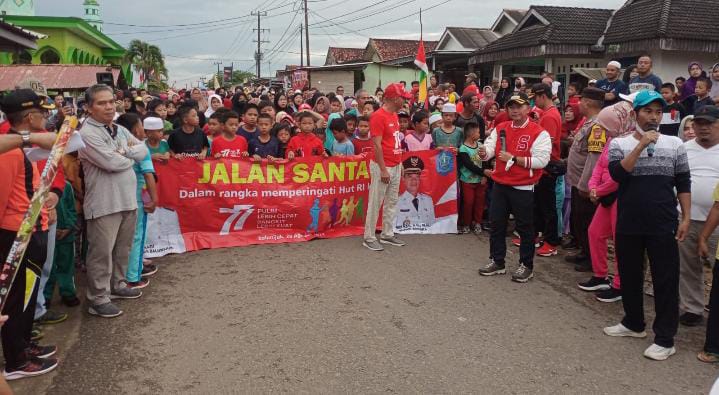 Sungaiselan | Jejakkriminal.com – Babinsa Koramil 413-08/S.Selan Sertu Andika Monitor dan pengamanan pelaksanaan giat jalan santai di Desa simpang Katis dalam rangka memeriakan memperingati HUT RI ke 77. Minggu (28/08/2022)