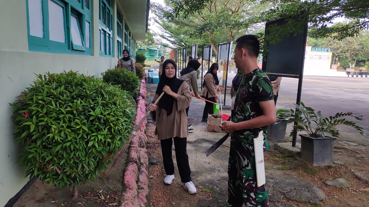Kegiatan ini diawali dengan apel pagi yang di ikuti seluruh personil Kodim dan jajarannya dilanjutkan pembagian sektor pembersihan oleh Mayor Inf Parisen Ginting.Dalam kegiatan tersebut tampak seluruh personel Koramil maupun staf baik para Bintara, Tamtama maupun PNS Kodim 0413/Bangka ikut andil melaksanakan pembersihan area sekitar Makodim sehingga Makodim 0413/Bangka tampak bersih.