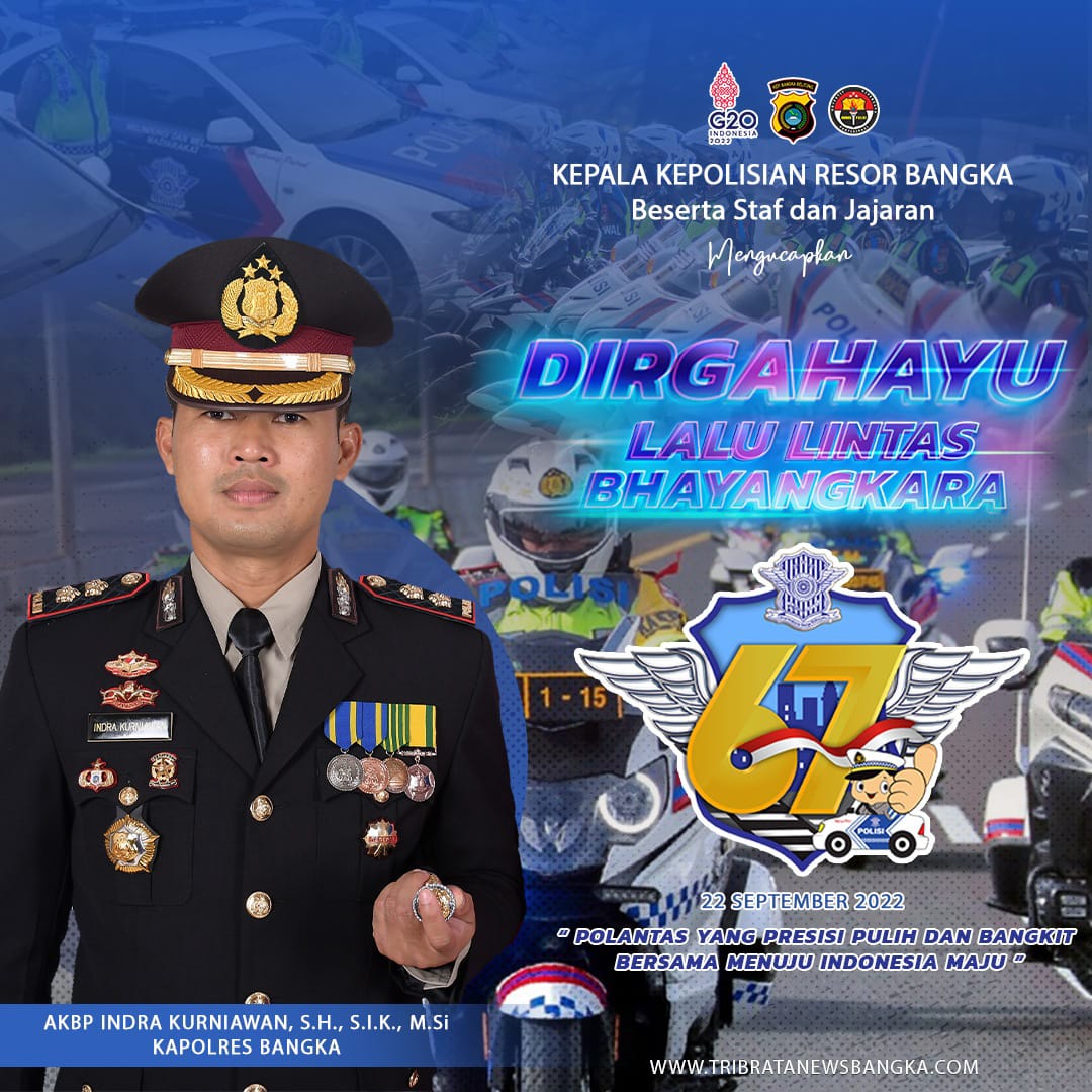 Dalam hal ini Kapolres Bangka AKBP Indra Kurniawan, S.H., S.I.K., M.Si mengucapkan “Dirgahayu Polisi Lalu Lintas Indonesia, Khususnya Sat Lantas Polres Bangka, Polisi Lalu Lintas yang Presisi Pulih dan Bangkit Bersama Menuju Indonesia Maju”, ujar Kapolres