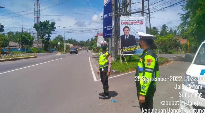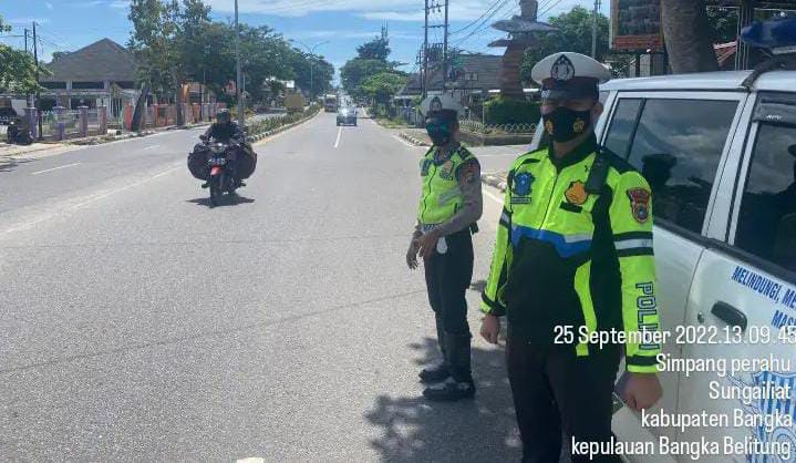 Sungailiat| Jejakkriminal.com – Dalam merciptakan Kamseltibcar Lantas (Keamanan Keselamatan dan Ketertiban Lalu Lintas) di Kabupaten Bangka, Satlantas Polres Bangka melaksanakan Patroli rutin. Minggu (25/9/2022)