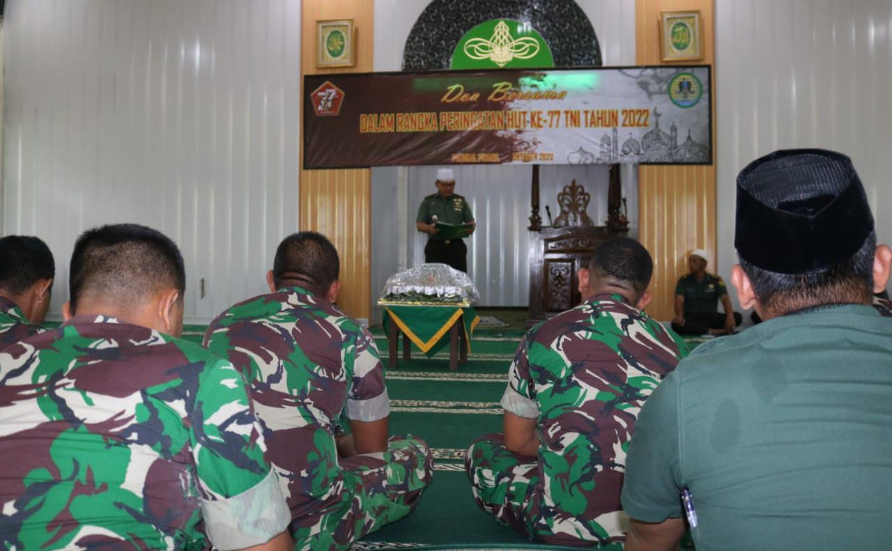 Doa bersama yang kita laksanakan ini adalah salah satu bentuk ibadah permohonan kita kepada Allah SWT agar kita selalu di berikan kesehatan, keselamatan, keberkahan serta kelancaran dalam melaksanakan tugas pokok TNI kedepan demi tegaknya NKRI dan juga mendoakan saudara saudara kita yang dalam musibah di manapun berada semoga di berikan kesabaran dan ketabahan, ” pungkas Kolonel Inf Denny Noviandi.