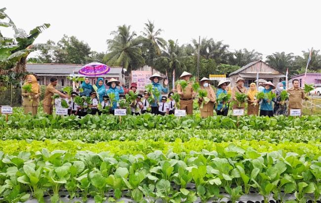LUBUK BESAR | Jejakkriminal.com – Hari Pangan Sedunia yang jatuh setiap tanggal 16 Oktober kali ini diperingati lebih awal, dengan digelarnya acara panen sayur bersama kegiatan Pekarangan Pangan Lestari (P2L) di Kelompok Wanita Tani (KWT) Mawar New di Desa Lubuk Pabrik, Kecamatan Lubuk Besar, Selasa (11/10/2022).