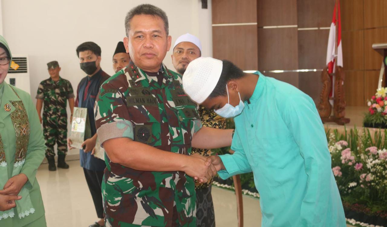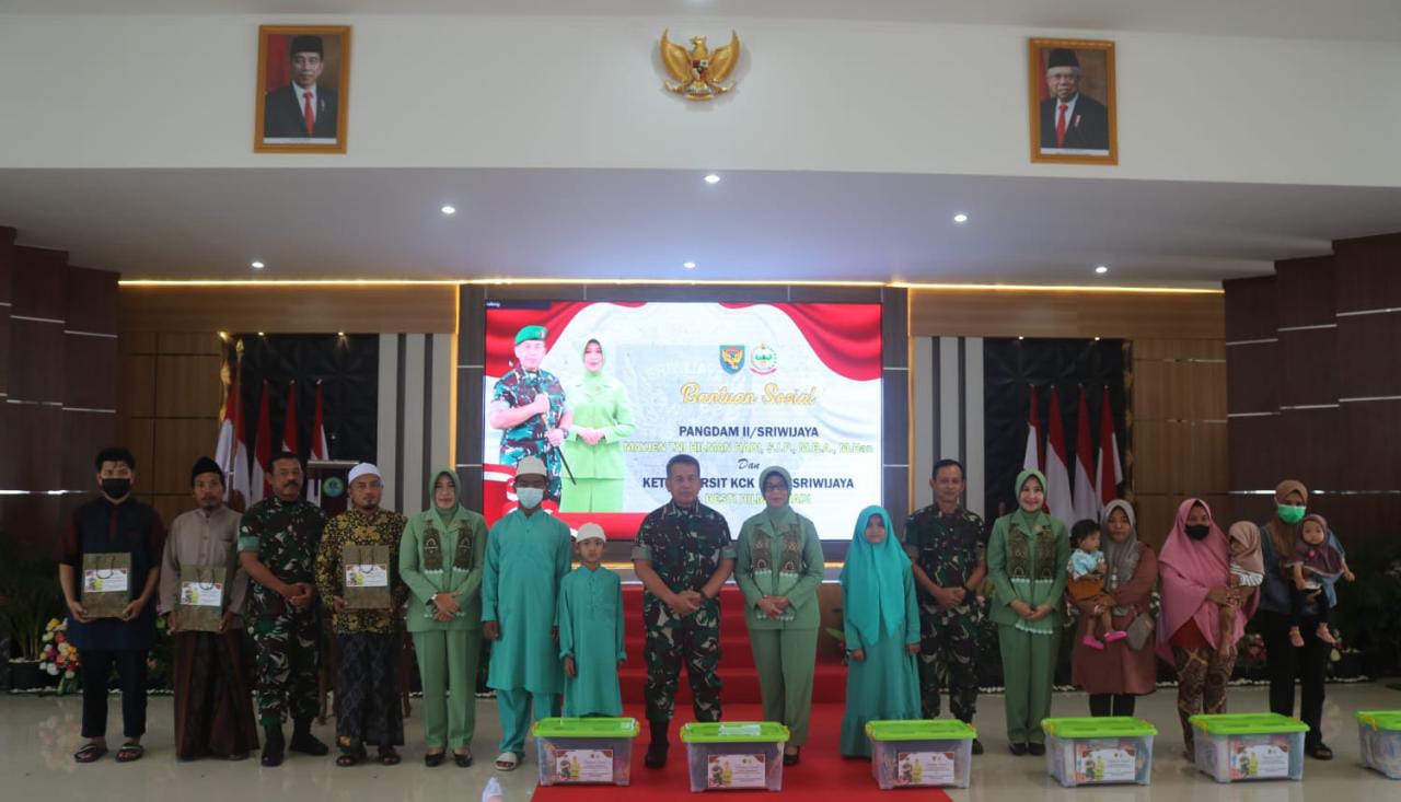 Pangkalpinang| Jejakkriminal.com-  Pangdam II/Sriwijaya Mayjen TNI Hilman Hadi, S.I.P., M.B.A., M.Han di dampingi Ketua Persit KCK PD II/ Sriwijaya Ny Hesti Hilman Hadi menyerahkan langsung santunan kepada penderita Balita Stunting asal wilayah kota Pangkalpinang Jumat 21/10/2022 di Aula Makorem 045/Garuda Jaya.Selain itu Pangdam juga menyerah santunan kepada Perwakilan Pondok Pesantren Nurul Huda Asyarifi, Ponpes MTAQ Zirr Bin Hubaisy dan Pondok Pesantren Quro Zaeinul Ulum, serta menyerahkan santunan kepada anak Yatim Piatu dari panti Asuhan Baiturahmah Annur Pangkalpinang.
