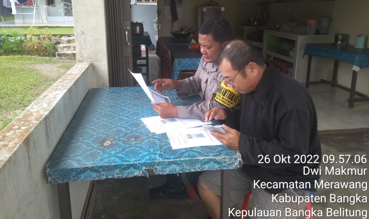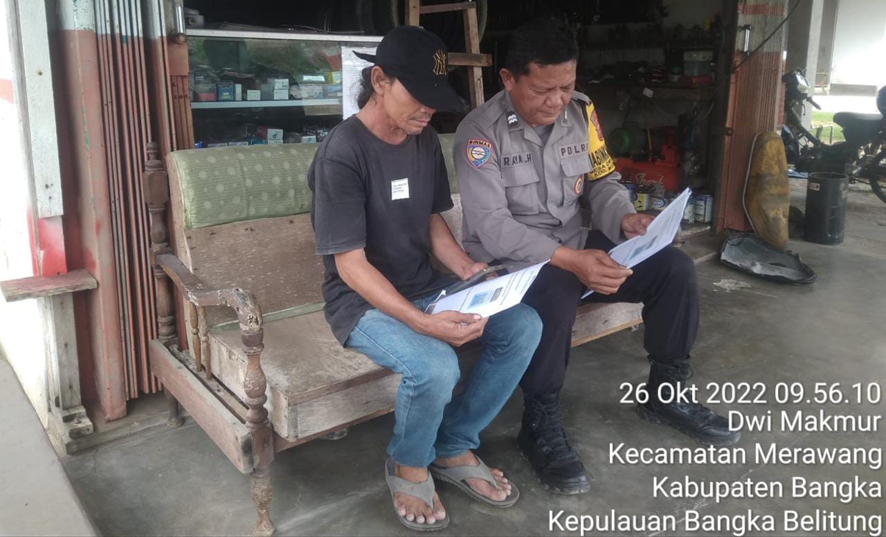 Sungailiat| Jejakkriminal.com – Dalam rangka memberikan Pelayanan kepada Masyarakat Bhabinkamtibmas Polsek Merawang Melakukkan Sosialisasi DUMAS PRESISI di Kecamatan Merawang.Jum’at (28/10/2022)