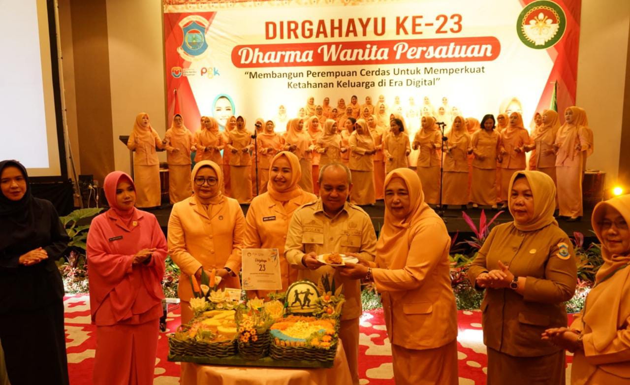 PANGKALPINANG| Jejakkriminal.com – WaliKota Pangkalpinang Maulan Aklil (Molen) bersama Ketua TP PKK Pangkalpinang Monica Haprinda menghadiri acara peringatan HUT ke-23 Dharma Wanita Persatuan (DWP) yang mengangkat tema “ Membangun Perempuan Cerdas Untuk Memperkuat Ketahanan Keluarga di Era Digital “ di Fox Harris Hotel, Selasa (13/12/2022).